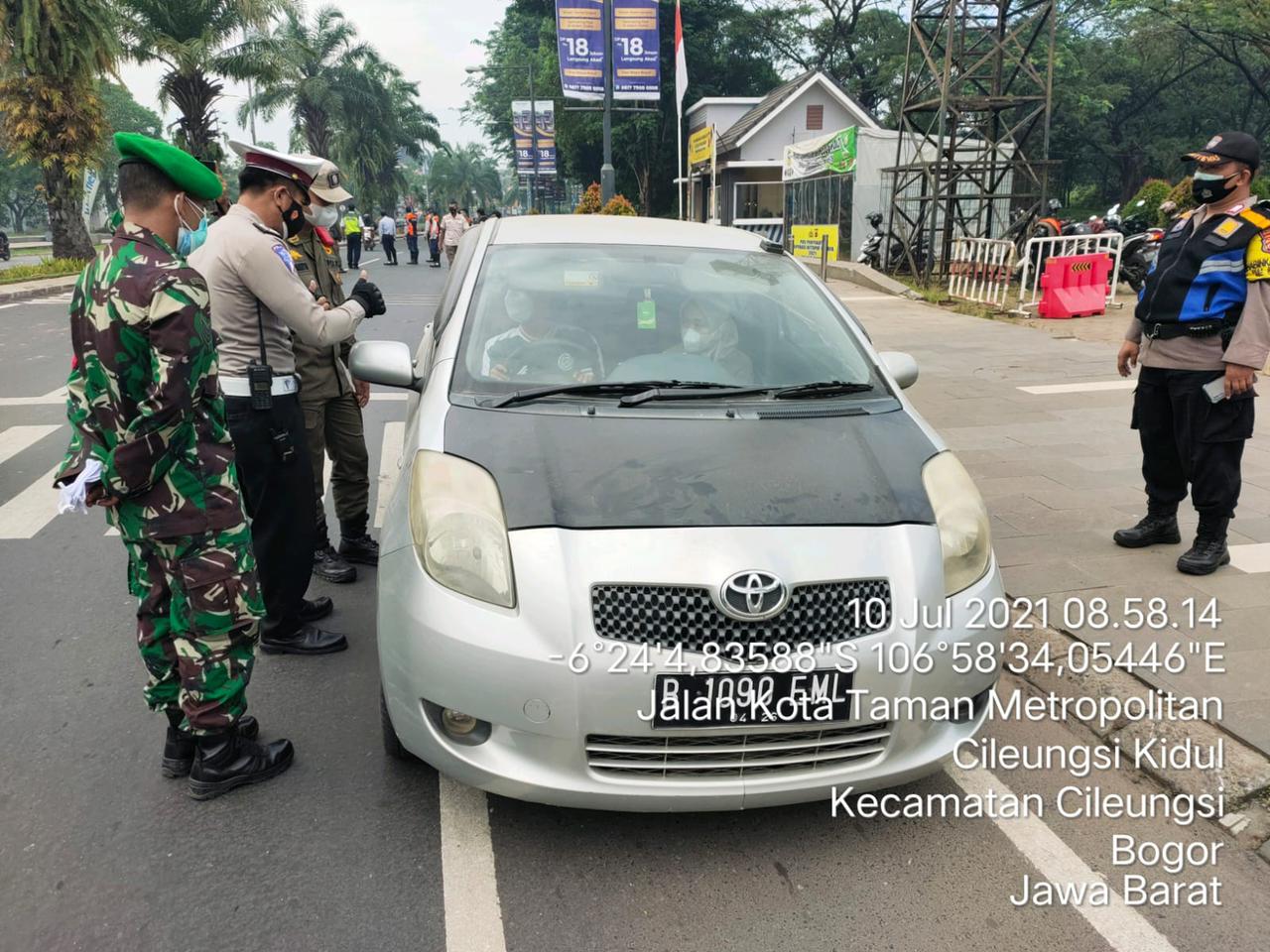 Polsek Cileungsi Melakukan Penyekatan Terhadap Kendaraan yang Akan Memasuki Wilayah Cileungsi Dalam Rangka PPKM Darurat