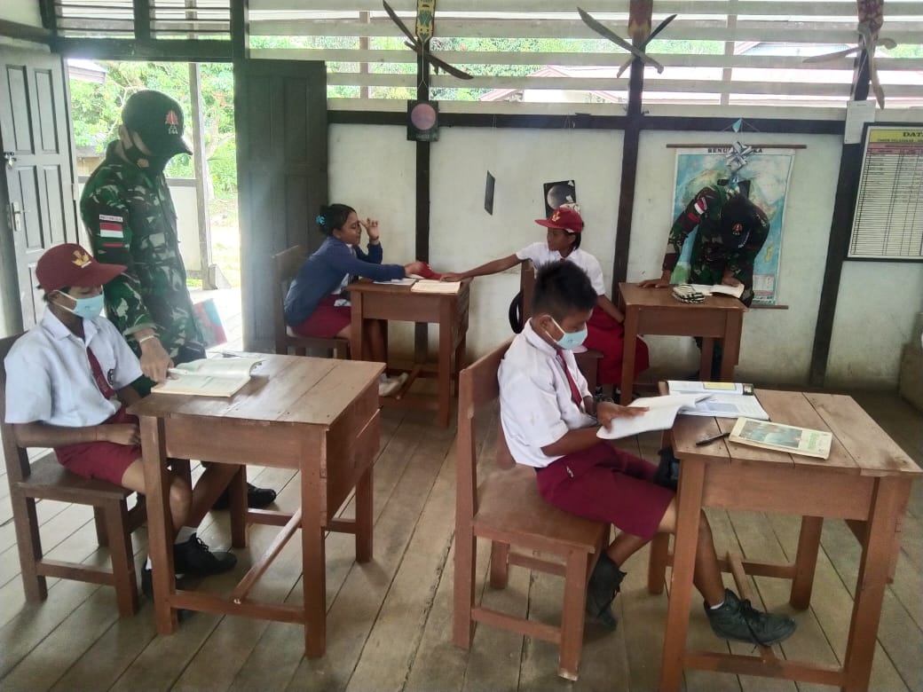 Gerbang Media Nasional Pewarta : Tb Djuhari Sasmita Kapuas Hulu, – Gerbang Media Nasional – Anggota Satgas Pamtas RI-Malaysia Yonif 144/JY menjadi tenaga pendidik di SD bakul desa Labian irang Kecamatan Batang Lupar Kabupaten Kapuas Hulu Kalbar. Hal ini disampaikan Dansatgas Pamtas RI-Malaysia Letkol Inf Andri Suratman dalam rilis tertulisnya di pos Kotis Badau Rabu (18/08/2021). Pendidikan merupakan menjadi faktor utama yang sangat penting dalam menunjang kemajuan suatu bangsa, anggota Satgas kami menjadi tenaga pendidik di SD bakul mengajarkan matematika dan wawasan kebangsaan harapan nya anak-anak generasi penerus bangsa bisa menjadi harapan bangsa yang baik untuk kemudian hari,di tengah keterbatasan sarana prasarana sekolah”, ucapannya. “Saya sangat senang dan berterimakasih sekali kepada bapak satgas yang telah membantu mengajar disekolah kami sehingga anak kami bisa bertambah wawasan nya,”ucap pak Bernande Talin selaku Kepsek. Selain jadi tenaga pendidik pratu Siregar dan dua rekannya juga mensosialisasikan tentang kebersihan lingkungan sekolah, mencuci tangan sebelum kegiatan serta bermasker dalam beraktivitas agar terhindar dari Penyebaran Covid-19.
