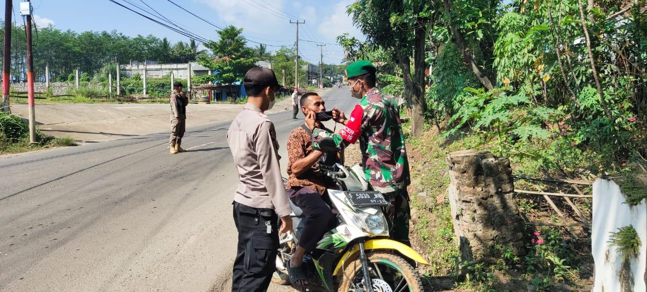 BOGOR,GMN – Polsek Cariu bersama Koramil dan Satpol PP melaksanakan kegiatan penyekatan dan pembagian masker yang berlokasi di Jl. Brigjen Dharsono Cariu, pada Senin (02/08).