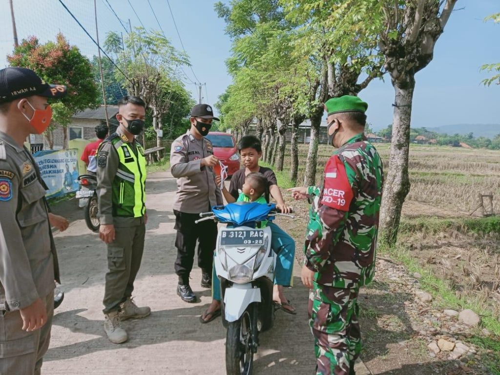 BOGOR,GMN – Polsek Cariu bersama Koramil dan Satpol PP melaksanakan kegiatan penyekatan dan pembagian masker yang berlokasi di Jl. Brigjen Dharsono Cariu, pada Senin (02/08).