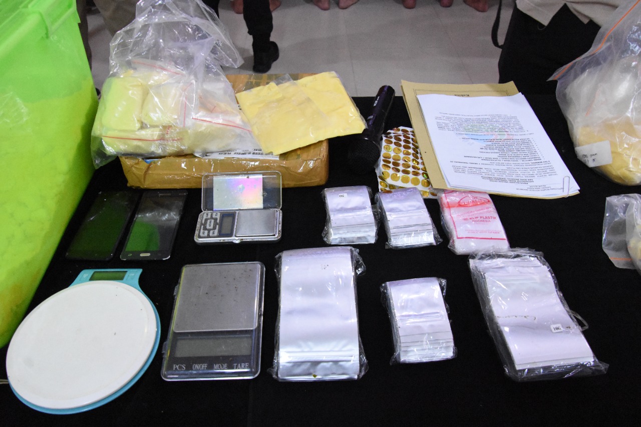 Gerbang Media Nasional Laporan : M Taufik BOGOR, GMN – Pengungkapan terhadap jaringan peredaran narkotika jenis biang sintetis dan tembakau sintetis siap pakai beredar di wilayah Kabupaten berhasil di Ungkap Satuan Narkoba Polres Bogor. Sebanyak 7 orang tersangka berhasil di amankan Satuan Narkoba Polres Bogor, dimana para tersangka tersebut ialah IB (21 th), DN (31 th), MF (22 th), LP (23 th), AD (23 th) dan AR (24 th ). Kapolres Bogor AKBP Harun S.I.K., S.H mengungkapkan dari pengungkapan para tersangka jaringan peredaran narkotika jenis biang sintetis dan tembakau sintetis tersebut di ketahui para tersangka ini di ketahui memproduksi barang-barang haram tersebut di lakukan Secara home industri. Dimana para tersangka tersebut mendapat bahan-bahan untuk pembuatan narkotika jenis biang sintetis dan tembakau ini, di pesannya Secara langsung dari china.Sementara bagi Narkotika yang telah siap di edarkan, para tersangka ini menjualnya melalui media sosial Instagram dengan berbagai nama akun. Dari hasil pengungkapan yang kita lakukan ini berhasil juga kita amankan barang bukti berupa biang sintetis seberat 23,34 kilo gram, tembakau sintetis siap pakai seberat 1,05 kilogram, 2 buah timbang digital, 2 pack plastik klip besar, , 26 lembar kardus packing l, 3 gulung lakban segel, 3 gulung bubble wrap, 4 botol plastik berisi alkohol, 1 buah jerigen berisi alkohol, 9 buah gelas neraca, 50 kertas merk robusta dan 34 buah plastik klip warna hitam. Dari total barang bukti yang disita sejumlah 23.34 Kg biang sintetis dapat di produksi menjadi kurang lebih 800 Kg narkotika tembakau sintentis. ketujuh tersangka tersebut pun akan kita kenakan dengan pasal 114 ayat 2 UU RI No.35 Tahun 2009 tentang Narkotika dengan ancaman hukuman minimal 5 tahun kurungan dan paling lama 20 tahun dan denda paling sedikit 1 milyar rupiah dan Maksimal 10 milyar rupiah, tutupnya. Post navigation Polsek Jonggol Amankan Pelaku Pencurian Kotak Amal di Dalam Masjid