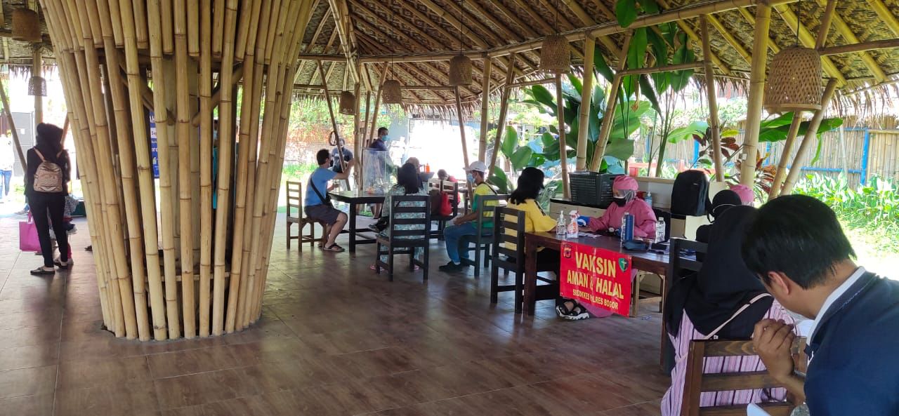 Gerbang Media Nasional Laporan : M Taufik BOGOR, GMN – Polsek Cibinong melaksanakan pengamanan vaksinasi massal yang berlokasi di RM. Saung Berkah Cibinong, pada Sabtu (11/09). Kegiatan vaksinasi covid 19 ini dengan sasaran masyarakat umum dan remaja diatas 12 tahun dengan penanggung jawab pelaksanaan kegiatan Kasidokkes Polres Bogor dr. Elynda dan Tenaga Vaksinator berasal dari Anggota Sidokkes Polres Bogor. Jumlah masyarakat yang hadir sebanyak 443, dan sebanyak 422 orang berhasil di vaksin dengan vaksin berjenis sinovac sedangkan 21 orang gagal screening. “Selama kegiatan berlangsung aman dan kondusif untuk masyarakat yang hadir sangat antusias terhadap vaksinasi massal ini, kami berharap dengan adanya vaksinasi massal seperti ini dapat mempercepat pelaksanaan vaksin untuk kalangan warga masyarakat.” Ujar Kapolsek Cibinong AKP Bayu Tri Nugraha, SE., S.I.K., MM. Post navigation Polri Bersama Koramil Rancaekek Tegakan Disiplin Prokes Covid 19 Dan Bagikan Masker Dimasa Penerapan PPKM Level 3 Sambil Olahraga Jalan Santai, Polisi Kembali Bagikan Bansos Kepada Masyarakat Kurang Mampu Dimasa PPKM