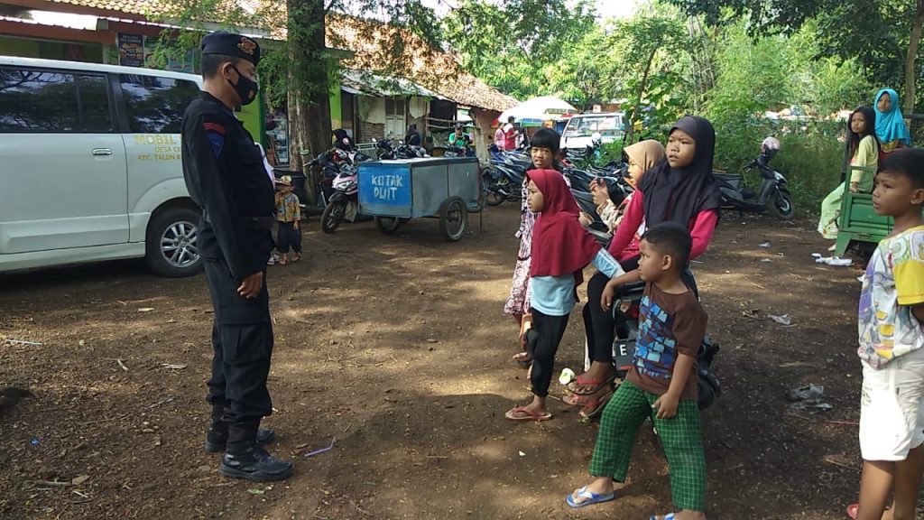 Dalam kesempatan tersebut anggota Kompi 1 Batalyon C Pelopor Bripka Toto Purwoto bersama anggota Sat Brimob Polda Jabar lainnya menyampaikan himbauan protokol kesehatan serta mengajak anak-anak untuk ikut besama – sama menjaga keamanan diri juga lingkungan untuk selalu menjalankan protokol kesehatan sambil bagikan masker.