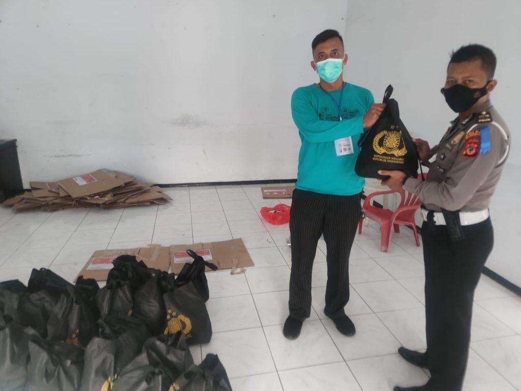 Polisi Turun Langsung Bagikan Bansos Kepada Masyarakat