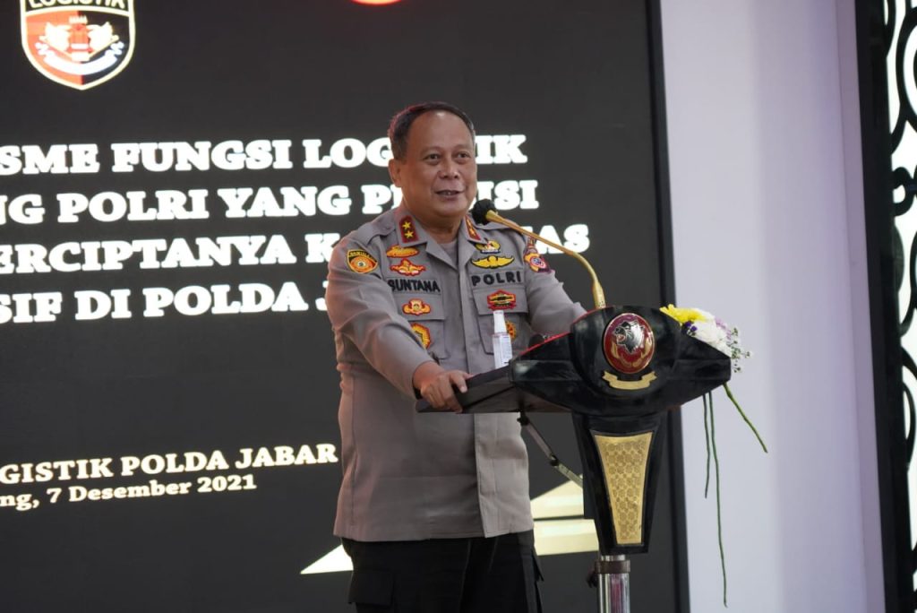 BANDUNG, GMN – Kapolda Jabar Irjen Pol. Drs. Suntana M.Si menghadiri kegiatan pembukaan Rakernis fungsi Logistik Tahun 2021 bertempat di Aula Dit Lantas Polda Jabar, Selasa (7/12/2021).