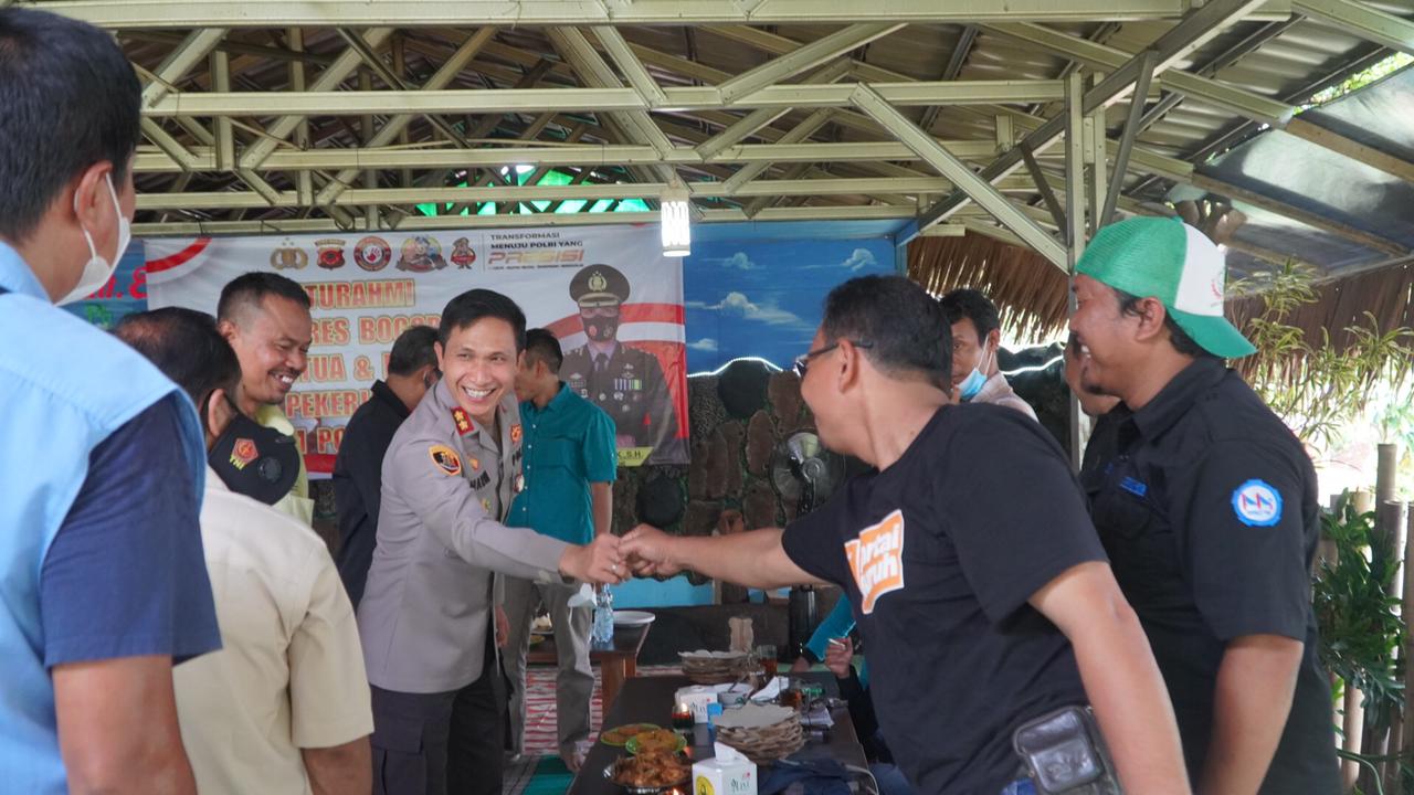 Gerbang Media Nasional Laporan : M Taufik BOGOR, GMN – Kapolres Bogor gelar silahturahmi dengan serikat buruh yang tergabung dalam federasi serikat pekerja metal Indonesia (FSPMI), SPN, Kahutindo, Hujatan, Luomenik, Gerteks, FKUI, SP SKEP, DPC ISBI, RTMM,, PPMI 98, FKBC, LEM, SPK, SP TSK, SPIN, Gesperindo dan SBDSI di Rumah makan Ma Enis Kecamatan Cibinong Kabupaten Bogor Pada Sabtu (11/12). Dalam kegiatan silahturahmi bersama serikat buruh tersebut Kapolres Bogor AKBP Harun S.I.K., S.H di dampingi Kasat Intelkam Polres Bogor AKP Aep Saepudin S.H, KBO Sat Intelkam Iptu Ano Junaedi S.H , dan Para Kanit Intelkam Polres Bogor. Kapolres Bogor AKBP Harun dalam kegiatan silahturahmi dan tatap muka tersebut mengungkapkan berterima kasih kepada rekan-rekan serikat buruh yang turut menjaga kondusifitas di wilayah kabupaten Karena kondusifitas tidak akan tercapai dengan kerja kepolisian saja. Kami sangat membutuhkan peran serta dari rekan-rekan sekalian. Saya harapan kita dapat bersama-sama terus bersinergi dalam menjalin hubungan yang sudah terjalin baik ini terkait dengan hal-hal mengenai buruh yang berada di kabupaten Bogor ini. Saat ini kita sedang menghadapi Pandemi Covid19 dan Kabupaten Bogor ini berstatus PPKM Level 2, untuk itu kami harapkan rekan-rekan dari serikat buruh ini untuk dapat disiplin menjalankan protokol kesehatan. Dan bila mana masih ada yang belum di Vaksin baik itu teman, tetangga ataupun sanak saudara bisa bekerja sama dengan kami untuk dilaksanakannya Vaksinasi Massal Covid19. Mari kita bersama-sama hadapi Pandemi Covid19 ini agar segera usai, dan juga mari kita ciptakan Kabupaten Bogor ini agar tetap aman dan Kondusif, tutupnya Post navigation Buangan Limbah Perusahaan Bahayakan Pengguna Jalan Konsleting Listrik Toko Sembako Terbakar di Citereup