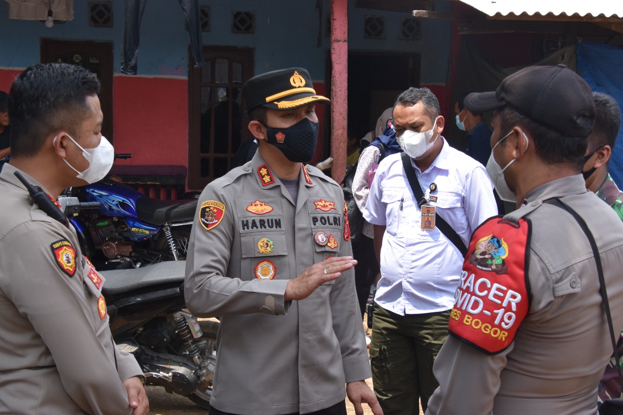 BOGOR, GMN – Polres Bogor, Kapolres Bogor AKBP Harun, S.I.K., SH melaksanakan kunjungan ke Kp. Bunisari RT 02/08 Kel. Cibinong Kec. Cibinong Kab. Bogor dalam rangka sidak vaksinasi hunter.(11/12).