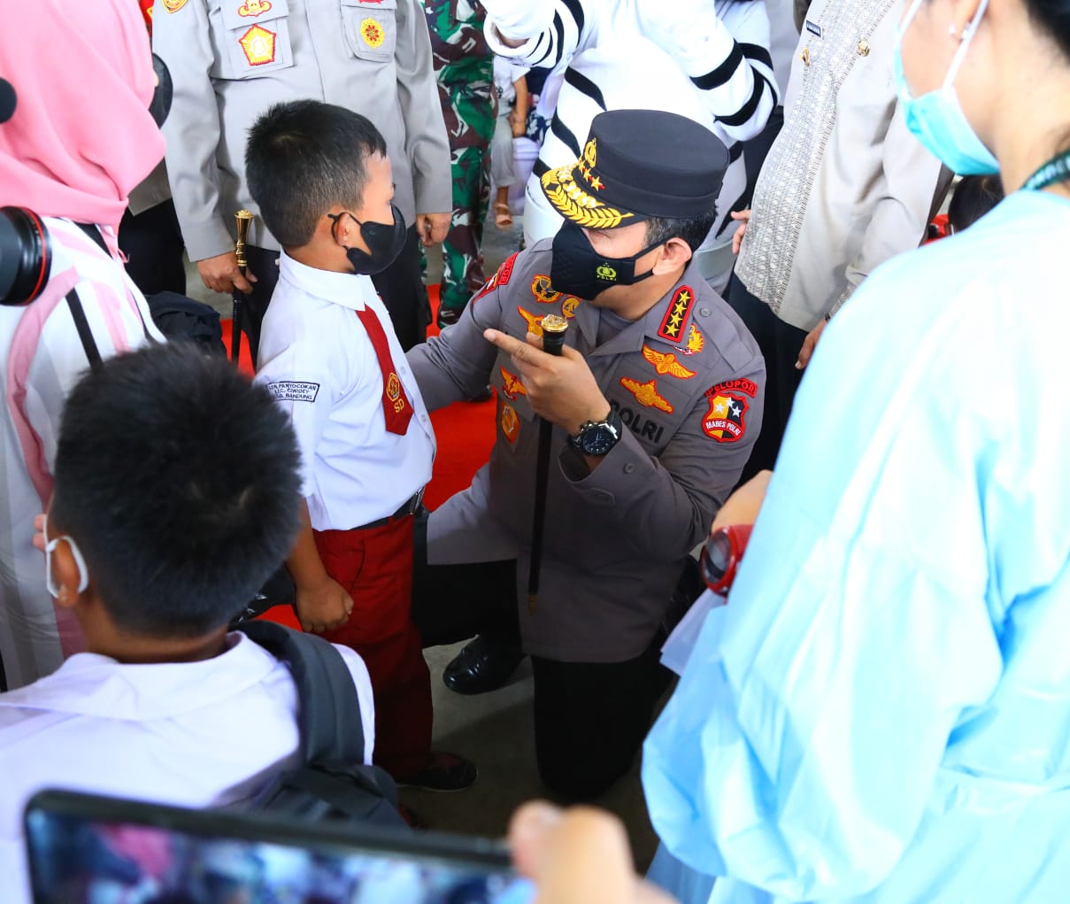Gerbang Media Nasional Laporan : M Taufik Bandung, Jawa Barat, GMN – Kapolri Jenderal Listyo Sigit Prabowo menghadiri kegiatan akselerasi vaksinasi serentak di Gedung Dome Bale Rame, Kabupaten Bandung, Jawa Barat, Jumat (7/1/2022). Percepatan tersebut juga digelar seluruh wilayah Indonesia. Dalam kesempatan itu, Sigit menekankan soal syarat wajib untuk mendukung kebijakan Pemerintah Indonesia soal Pembelajaran Tatap Muka (PTM) bagi anak-anak. Menurut Sigit, ada dua yang harus dipenuhi untuk mengimplementasikan kebijakan itu, yakni, target vaksinasi masyarakat umum harus 70 persen dan kelompok lanjut usia (lansia) wajib 60 persen. “Pemerintah saat ini telah memberikan kebijakan PTM 100 persen, dimana tentunya untuk melaksanakan PTM 100 persen dan vaksinasi anak, maka target pencapaian vaksinasi masyarakat umum 70 persen dan lansia 60 persen harus terpenuhi,” kata Sigit dalam jumpa pers. Mantan Kapolda Banten ini menjelaskan, proses belajar mengajar anak secara tatap muka langsung merupakan hal yang sangat penting. Mengingat, hampir dua tahun semenjak Pandemi Covid-19, generasi bangsa kehilangan momentum tersebut. Namun disisi lain, Sigit menyatakan, guna mewujudkan pembelajaran secara tatap muka langsung, harus ada jaminan kesehatan dan imunitas terhadap anak dari bahaya paparan virus corona. Salah satunya adalah dengan memberikan suntikan vaksin. Penguatan imunitas terhadap anak, kata Sigit juga akan memberikan jaminan kesehatan kepada orang tua dan orang-orang yang ada di dalam lingkungan keluarganya. Sehingga, tidak perlu ada rasa khawatir munculnya klaster keluarga ketika PTM 100 persen diberlakukan. “Kita ingin anak-anak kita segera melakanakan tatap muka. Namun disisi lain, kita harus yakin anak-anak kita sudah dibekali vaksinasi atau imunisasi. Sehingga memiliki imunitas dan kekebalan. Sehingga saat melaksanakan aktivitas aman tidak menjadi carrier karena saat kembali biasanya bertemu orang tua, nenek atau kakek. Dan juga memiliki posisi rentan apabila tidak diberikan imunisasi atau vaksinasi,” ujar eks Kabareskrim Polri itu. Lebih dalam, Sigit memaparkan, vaksinasi meningkatkan imunitas seseorang dan juga dapat mencegah atau mengurangi fatalitas dari bahaya varian Covid-19, seperti Delta dan Omicron. Sebab itu, Sigit menyebut, akselerasi merupakan tantangan bagi seluruh stakeholder untuk terus melakukan akselerasi vaksinasi. “Karena dari pemeriksaan terhadap masyarakat yang sudah divaksin terkena varian baru maka gejala yang kemudian didapatkan rata-rata OTG atau gejala ringan. Artinya vaksin betul berikan perlindungan pada masyarakat terhadap serangan varian yang ada baik, Delta ataupun Omicron,” ucap Sigit. Sementara itu, Sigit menyampaikan, dengan terus dilakukannya akselerasi vaksinasi, hal itu dapat mempertahankan tren positif laju pertumbuhan Covid-19 di Indonesia saat ini yang sudah dapat dikendalikan dengan baik. “Ini semua harus dilakukan karena memang, Alhamdulillah hampir 167 hari kita bisa pertahankan angka Covid-19, bisa kita kendalikan berada di angka positivity rate dibawah 1 kemudian BOR juga saat ini masih terkendali di angka tiga. Artinya angka ini semuanya bisa terjadi karena memang kerja keras seluruh elemen stakeholder baik dari TNI, Polri, Pemda, Dinkes, relawan dan rekan-rekan yang tergabung. Sehingga akselerasi vaksinasi dilaksanakan dengan baik. Alhamdulillah hasilnya 167 hari angka Covid-19 bisa dikendalikan,” papar Sigit. Dengan terkendalinya angka Covid-19, menurut Sigit, itu akan menjadi modal penting terkait dengan aktivitas masyarakat. Selain itu, Indonesia akan semakin siap dalam menghadapi event nasional maupun internasional. Sehingga, aktivitas pertumbuhan perekonomian Indonesia akan terus membaik di tengah Pandemi Covid-19. “Saya tetap mengimbau untuk tetap melaksanakan protokol kesehatan walaupun sudah vaksinasi. Karena dua hal tersebut kunci utama. Disiplin terhadap prokes meskipun sudah vaksinasi dan tetap waspada jangan abai, jangan lengah. Post navigation Personil Detasemen Gegana Sat Brimob Polda Jabar Laksanakan Patroli Dialogis Demi Berantas Virus Covid-19 Berikan Edukasi Tatanan Hidup Baru, Personel Sat Brimob Polda Jabar Ingatkan Prokes Kepada Masyarakat