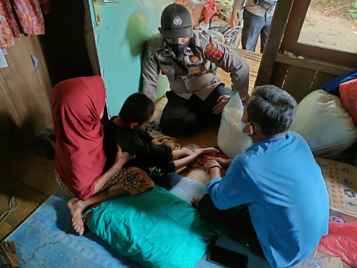 Pada saat menjenguk Kapolsek Surade Polres Sukabumi Polda Jabar AKP Asep Sundana juga memberikan bantuan sembako kepada keluarga Ikhsan.