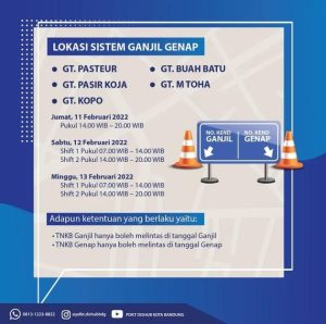 Sementara, Asep Kuwara menambahkan, untuk Gage (Ganjil Genap) berlaku di 5 GT kota Bandung diantaranya GT Pasteur, GT Pasir Koja, GT Kopo, GT Buah Batu dan GT M.Toha.