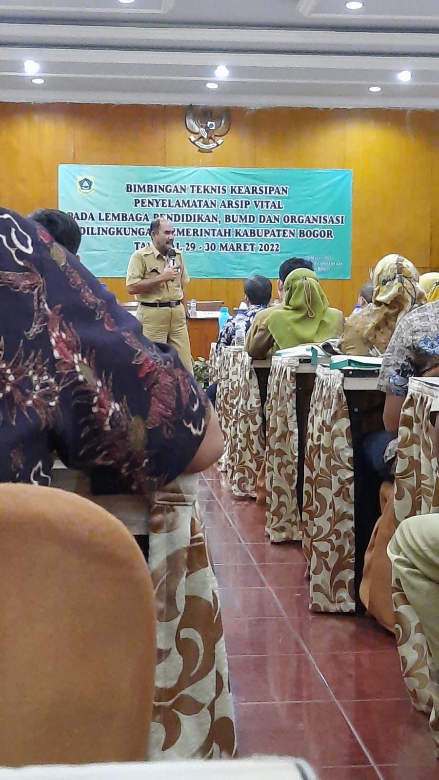 Gerbang Media Nasional Laporan : M Taufik BOGOR, GMN – Sekretaris Daerah (Sekda) Kabupaten Bogor, Burhanudin minta seluruh pimpinan di lembaga pendidikan, BUMD dan organisasi masyarakat di wilayah Kabupaten Bogor agar memberikan dukungan bagi terlaksananya pengelolaan kearsipan yang komprehensif dan terpadu, sesuai dengan UU No. 43 tahun 2009 tentang Kearsipan. Hal tersebut dikatakan Sekda Burhanudin saat membuka kegiatan Bimbingan Teknis Kearsipan bagi lembaga pendidikan, BUMD, dan organisasi masyarakat, di Hotel Purnama, Megamendung, Selasa (29/3). Acara tersebut diselenggarakan Dinas Arsip dan Perpustakaan Kabupaten Bogor selama dua hari. Sekretaris Daerah Kabupaten Bogor, Burhanudin mengatakan, banyak masalah muncul, hanya karena salah urusnya penyimpanan arsip, dari akuntabilitas lembaga atau institusi, serta kelancaran pelayanan prima akan berdampak langsung karenanya. “Proses dan hasil pelaksanaan tugas di bidang pemerintahan, pembangunan dan kemasyarakatan, sangat berkaitan dengan pengelolaan administrasi. Hal ini menciptakan arsip secara terus menerus sebagai bukti kegiatan otentik, terpercaya dan dapat dipertanggungjawabkan,” kata Burhanudin. Arsip, lanjut Sekda, sebagai bahan pertanggungjawaban hanya mungkin akan berdaya guna bila dikelola secara tepat, akurat dan profesional oleh para pengelola kearsipan, tentunya dilengkapi dengan sarana dan prasarana kearsipan yang memadai. “Untuk itu, pelatihan ini menjadi penting. Diharapkan pengelola arsip nantinya memiliki pemahaman teknis yang tepat dan inovatif dalam merespon dinamika kearsipan, sejalan dengan semakin berkembangnya teknologi informasi dan komunikasi,” terang Sekda Burhanudin. Post navigation TPU Tajurhalang Menangkan Lomba Gali Kubur, Bupati Bogor Hadiahi Uang Tunai Sebesar Rp5 juta Unit Reskrim Polsek Jonggol bersama Unit PPA Polres Bogor amankan pelaku Cabul