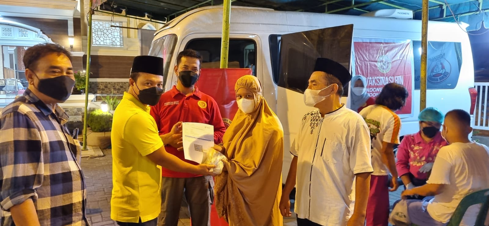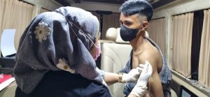 Gerbang Media Nasional Laporan : redaksi daerah BINDA Sumut bekerjasama dengan Pemko Medan menggelar layanan vaksinasi Covid-19 pada malam hari. Untuk Sumut hari ini kita alokasikan sebanyak 14.000 dosis, di antaranya di Medan 1500 dosis, dilaksanakan di Masjid Abidin Jl. Brigjend Katamso No.416, Kp. Baru, Kec. Medan Maimun, Kota Medan dan 3 lokasi Masjid tersebar,” ungkap Kepala BIN Daerah Sumut Brigjen TNI Asep Jauhari Puja Laksana. (15/4/2022) Jum’at Malam. Upaya ini mendukung petunjuk dari Bapak Presiden Joko Widodo, bahwa tahun ini sudah bisa mudik atau pulang kampung pada perayaan Idul Fitri 2022, asalkan pemudik sudah mendapat dosis pertama dan kedua serta dosis penguat (booster) vaksin COVID-19. KABINDA Sumut, Brigjen TNI Asep Jauhari Puja Laksana menyampaikan, layanan vakasinasi malam hari dilakukan untuk mengantisipasi adanya masyarakat yang tidak mau melakukan vaksinasi pada siang hari. “Gerai vaksin ini dibuka sesudah buka puasa pada malam hari setelah shalat tarawih,” ujar Kabinda Sumut didampingi Kaposda Medan, Mayor Ricky Sahreza, Jum’at (15/4/2022). Ia menyebut, selama kegiatan Vaksinasi Malam di Masjid Abidin tetap memperhatikan Protokol Kesehatan (5M) guna mencegah penyebaran Virus Corona (Covid 19). Kaposda Medan menambahkan, tidak menutup kemungkinan Binda Sumut akan membuka gerai vaksin di tempat ibadah lainnya. Selain di rumah ibadah, mungkin di tempat-tempat yang banyak kegiatan dan aktivitas akan dibuka juga gerai vaksin. Ujar Kaposda Medan. Camat Medan Maimun, Dedi Rustam Alamsyah Nasution SSTP MSP mengatakan Vaksinasi di lingkungan Masjid Abidin ini merupakan bentuk kepedulian BIN terhadap warga yang tidak dapat melaksanakan vaksinasi pada siang hari, Oleh karena itu pihak Binda Sumut menyelenggarakan vaksinasi pada malam hari guna untuk membantu masyarakat yang ingin mudik. “Tidak ada perbedaan, semua kami berikan kemudahan untuk mendapat vaksin covid-19, termasuk bagi warga Kecamatan Medan Maimun, karena virus ini bisa menjangkiti siapa saja, di mana saja. Jadi sudah menjadi kewajiban pemerintah untuk melakukan vaksinasi covid-19 kepada seluruh masyarakat,” Tutupnya, Dedi Camat Medan Maimun. Post navigation Wabup H.Aep saepullah SE bagikan santunan anak yatim di desa balonggandu Dugaan Pemukulan saat Aksi Demo Mahasiswa di Depan Depo Pertamina, Kapolres: Saya akan Tindak Tegas