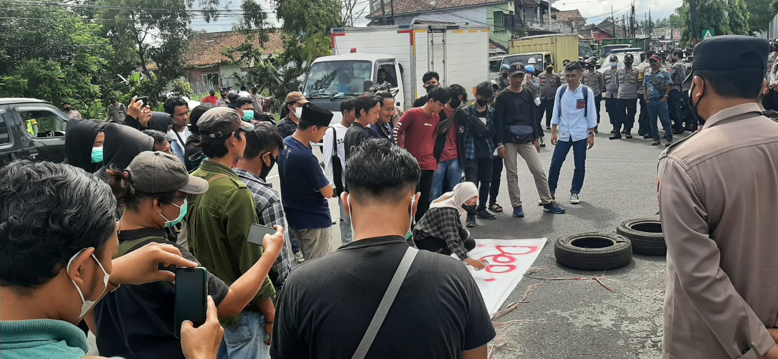 Gerbang Media Nasional Laporan : M Taufik TASIKMALAYA, GMN – Aksi demo mahasiswa yang tergabung dalam Serikat Mahasiswa Tasikmalaya (SEMATA) di depan Depo Pertamina Tasikmalaya pada Rabu, 6 April 2022 lalu diwarnai aki pembakaran ban bekas oleh massa aksi. Pembakaran ban bekas yang dilakukan massa aksi tersebut dilakukan di jalan depan pintu gerbang keluar masuk kendaraan pengangkut bahan bakar (BBM dan Gas) di Depo Pertamina Kota Tasikmalaya yg menyuplai kebutuhan bahan bakar untuk masyarakat di wilayah Priangan Timur. Aparat keamanan dari Polres Tasikmalaya Kota yang melakukan pengamanan jalannya aksi, kemudian meminta dan memerintahkan massa aksi untuk memadamkan api secara mandiri. Namun, massa aksi tidak mengindahkan permintaaan petugas malah membuat barikade mengelelilingi api agar tidak dipadamkan petugas. Dengan mempertimbangkan bahwa Depo Pertamina Tasikmalaya ini merupakan salah satu objek vital nasioal, dan aksi pembakaran ban ini bisa menyebabkan kebakaran, maka petugas pun berupaya untuk memadamkannya. Karena untuk memadamkan api tersebut petugas terlebih dahulu harus membuka barikade massa aksi dan disaat itu mulai terjadi kericuhan saling dorong antara petugas dan massa aksi. Pada saat kericuhan tersebut, terjadilah dugaan adanya pemukulan terhadap massa aksi di mana petugas yang berusaha memadamkan api dengan apar, coba dihalang-halangi massa aksi. Kapolres Tasikmalaya Kota AKBP Aszhari Kurniawan mengatakan, pihaknya akan menindak tegas terhadap anggotanya yang diduga melakukan pelanggaran terkait dugaan pemukulan saat pengamanan aksi demo di depan Depo TBBM Pertamina Tasikmalaya. “Saya pastikan akan menindak tegas segala bentuk pelanggaran yang dilakukan anggota,” ujar AKBP Aszhari, Senin (11/4/2022). Kapolres mempersilahkan kepada massa aksi yang merasa menjadi korban untuk melaporkannya ke Propam atau SPKT sebagai bahan dasar penyelidikan. “Kalau memang bersalah pastinya akan kita berikan tindakan dan sanksi,” tegas kapolres. Post navigation Dugaan Pemukulan saat Aksi Mahasiswa Di Tasikmalaya Diselesaikan dengan Islah, Kedua Belah Pihak Saling Memaafkan Dugaan Pemukulan saat Aksi Mahasiswa Di Tasikmalaya Diselesaikan dengan Islah, Kedua Belah Pihak Saling Memaafkan