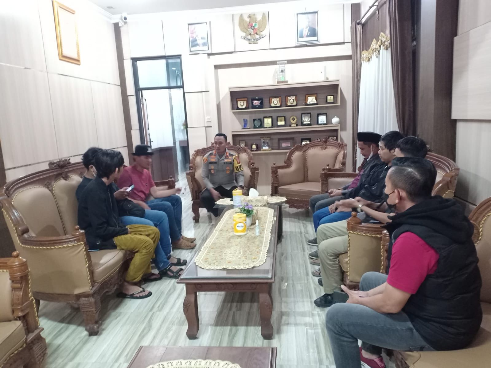 Gerbang Media Nasional Laporan : M Taufik TASIKMALAYA, GMN – Dugaan pemukulan yang diduga dilakukan oleh aparat kepolisian terhadap massa aksi dari Serikat Mahasiswa Tasikmalaya (SEMATA) saat aksi demo penolakan kenaikan BBM di depen Depo Terminal Bahan Bakar Minyak (TBBM) Pertamina Tasikmalaya, Rabu (6/4/2022) lalu, diselesaikan secara damai oleh kedua belah pihak. Polres Tasikmalaya Kota Polda Jabar yang bertanggungjawab dalam pengamanan aksi unjukrasa telah melakukan dialog dan islah dalam menyelesaikan persoalan dugaan pemukulan tersebut. Kedua belah pihak telah saling memaafkan dan persoalan tersebut diselesaikan secara damai. Pertemuan kedua belah pihak dilaksanakan di Mapolres Tasikmalaya Kota pada Kamis, 7 April 2022. Dalam pertemuan tersebut, hadir Kapolres Tasikmalaya Kota Polda Jabar AKBP Aszhari Kurniawan, berikut pejabat utama Polres Tasikmalaya Kota. Sementara itu, dari pihak mahasiswa hadir pengurus SEMATA, Muhammad Satriana Ilham alias Boy, Ketua SEMATA Ardiana Nugraha, Kabid Humas Polda Jabar Kombes Pol. Ibrahim Tompo S.I.K., M.Si mengapresias permintaan maaf yang disampaikan Kapolres Tasikmalaya Kota Polda Jabar karena dengan mengedepankan musyawarah segala permasalahan dapat diselesaikan dengan baik. Dalam pertemuan tersebut, Kapolres Tasikmalaya Kota Polda Jabar menyampaikan permohonan maaf atas peristiwa yang terjadi saat pengamanan aksi demo para mahasiswa di depan Depo TBBM Pertamina Tasikmalaya. “Saya selaku kapolres memohon maaf atas kejadian kemarin, kami tidak mengharapkan kejadian seperti itu. Namun, pemadaman api harus kami lakukan demi keselamatan semuanya. Dan terkait dengan dugaan aksi pemukulan dari anggota pengamanan, apabila ada yang terkena pukulan, saya juga mohon maaf. Namun, saya juga mempersilahkan kepada rekan-rekan massa aksi yang merasa menjadi korban untuk melaporkannya baik itu ke Propam maupun ke SPKT, dan akan kita proses,” ujar AKBP Aszhari. Kapolres menuturkan, ada beberapa ketentuan dalam melakukan penyampaian pendapat di muka umum yang juga harus ditaati oleh semua pihak. Ia berharap, ke depan agar masing-masing pihak bisa lebih mengendalikan diri, apalagi di bulan suci Ramadhan. Sementara itu, Pengurus SEMATA, Muhammad Satriana Ilham alias Boy mengatakan bahwa dari pihak Semata sudah berjumpa Kapolres dan menyatakan Islah, berdamai dengan bapak Kapolres Tasikmalaya Kota, beliau dengan lapang dada memohon maaf jika ada anak buahnya yang melakukan pemukulan, dan walaupun pak Kapolres membuka pintu (untuk melaporkan secara hukum) bagi anggota kami yang merasa dipukul oleh anggota, namun kami tidak ada membuat laporan (tuntutan). Ilham alias Boy menyatakan bahwa memang benar ada kejadian tersebut, tapi tidak menjadi masalah, maka nya kami tidak ada menuntut apapun karena kejadian seperti itu bagian dari dinamika di lapangan saat aksi unjuk rasa. Semoga ke depan pelaksanaan pengamanan unjuk rasa bisa lebih baik lagi, dan kami juga dapat melakukan kegiatan aksi dengan baik, ujarnya. Kesalahpahaman atau miskomunikasi yang terjadi pada saat aksi demo di depan Depo TBBM Pertamina Tasikmalaya pun diselesaikan dengan damai. Kedua belah pihak pun saling memaafkan dengan saling berjabat tangan. Post navigation . Dugaan Pemukulan saat Aksi Demo Mahasiswa di Depan Depo Pertamina, Kapolres: Saya akan Tindak Tegas