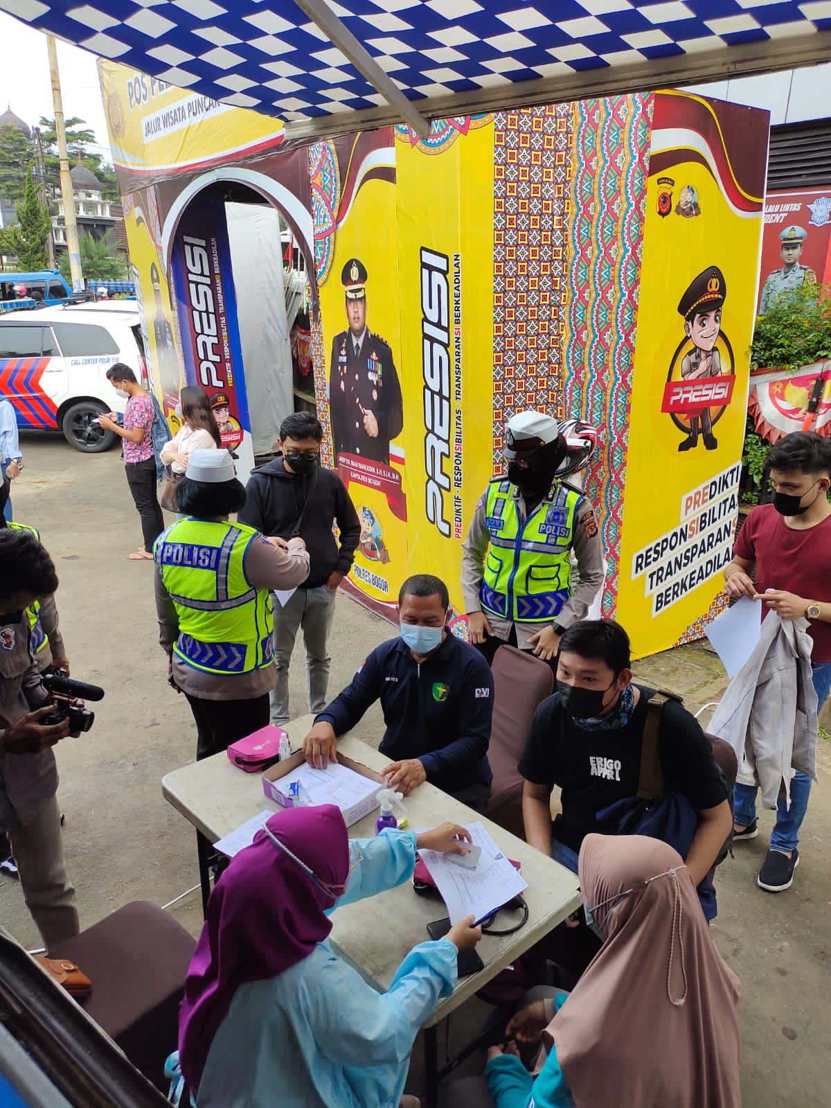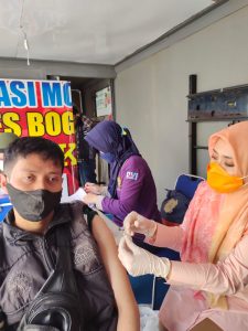 Gerbang Media Nasional Laporan M Taufik BOGOR, GMN – Polres Bogor, Dalam rangka kunjungan kerja Kapolda Jawa Barat Irjen Pol Drs. Suntana, M. Si Polres Bogor menggelar vaksinasi massal di Pospam Gadog, Sabtu (16/04/2022). Vaksinasi ini bertujuan demi terwujudnya percepatan vaksinasi covid 19 di Kabupaten Bogor. Adapun tahapan kegiatan vaksinasi ini diawali dengan Registrasi, Pengisian formulir vaksinasi covid 19, Pengukuran suhu badan serta tensi darah, Screening, Penyuntikan vaksin dan yang terakhir Observasi kurang lebih 15-30 menit. “Dari hasil pelaksanaan kegiatan vaksinasi covid 19 masyarakat yang berhasil di vaksin sejumlah 178 orang vaksin dosis 1, 2 dan Booster dengan menggunakan vaksin covovac, pfizer dan astrazeneca.”, ungkap Kasidokkes Polres Bogor dr. Elynda, V. E, MARS. “Kegiatan hari ini dimulai pukul 08.00 hingga pukul 17.00 Wib di Pospam Gadog.” Tutupnya. Post navigation Polsek Cibinong Lakukan Patroli Pendisiplinan Prokes Polsek Citeureup gelar Patroli Prokes di Jam Malam