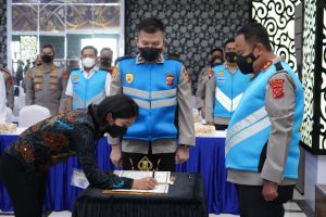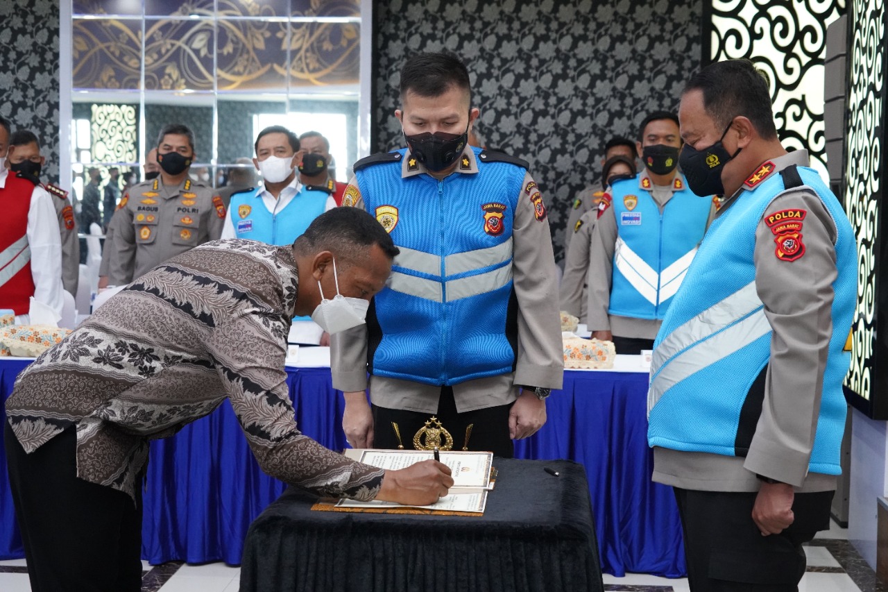 BANDUNG, GMN – Kapolda Jabar Irjen Pol Drs. Suntana, M.Si didampingi Wakapolda Jabar Brigjen Pol. Bariza Sulfi beserta Pejabat Utama Polda Jabar memimpin kegiatan penandatanganan pakta integritas penerimaan terpadu Taruna/i Akpol dan Bintara Polri gelombang II tahun 2022, bertempat di Aula Dit Lantas Polda Jabar, Senin (11/4/2022].