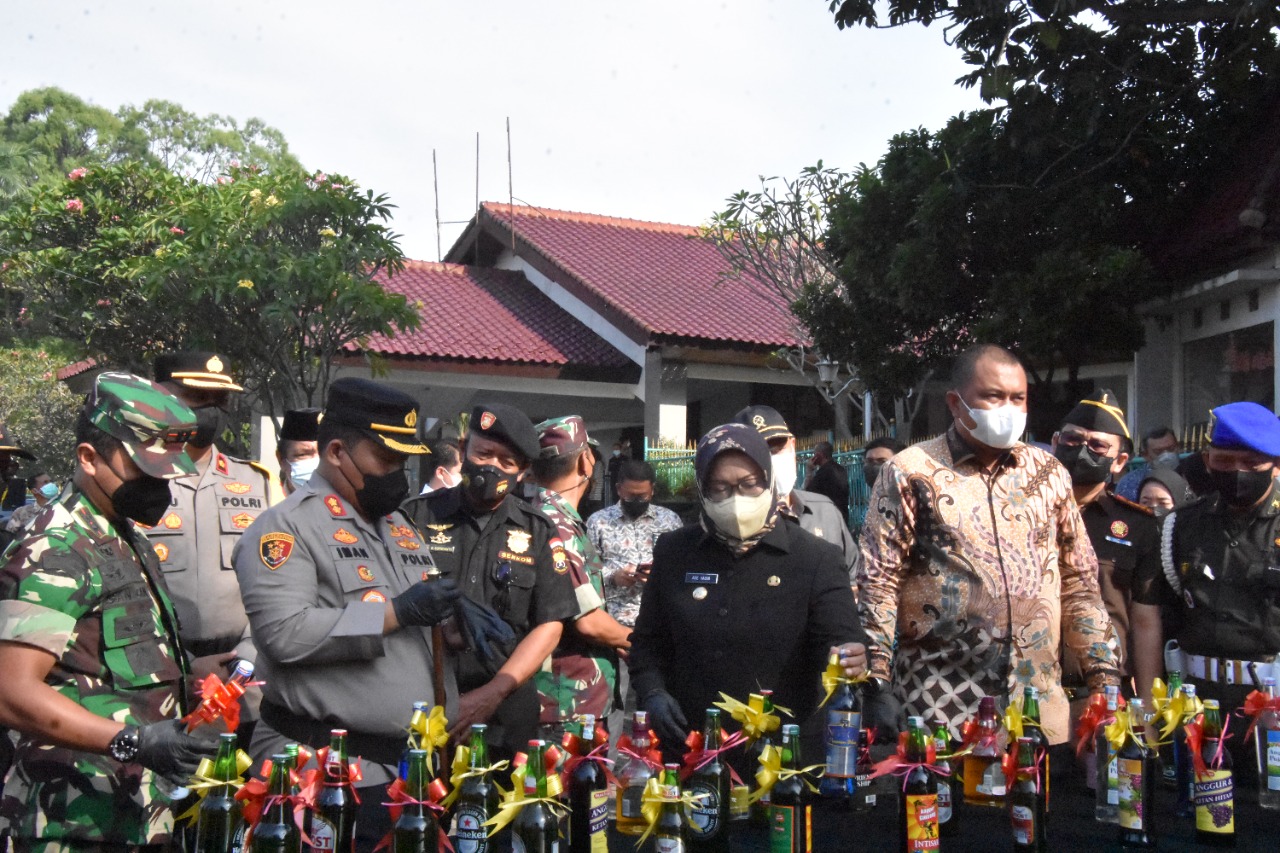 Minumam keras yang berhasil diamankan Sat Narkoba sebanyak 21.491 botol miras, 550 bungkus plastik minumam keras jenis ciu dan 10 drigen minumam keras jenis ciu.
