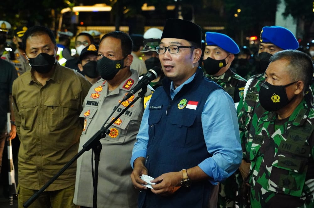 Gerbang Media Nasional Laporan : M Taufik BANDUNG, GMN – Kapolda Jabar Irjen Pol Drs. Suntana, M.Si bersama Gubernur Jabar dan FKPD Provinsi Jabar melaksanakan Kegiatan Patroli Gabungan Skala Besar dalam rangka Pengamanan Malam Takbiran Lebaran 2022 di Kota Bandung, Minggu (1/5/2022). Didalam kunjungannya FKPD Provinsi Jabar meninjau secara langsung keamanan disekitar wilayah Kota Bandung untuk memastikan situasi Malam Takbiran Umat Muslim dapat berlangsung secama aman, nyaman dan terbebas dari gangguan Kamtibmas serta sesuai standar protokol kesehatan. Turut hadir pada kegiatan tersebut Kasdam III / Siliwangi, Kabinda Jabar, Kasatpol PP Provinsi Jabar, Pejabat Utama Kodam III / Siliwangi, Pejabat Utama Polda Jabar, Dandim 0618 / Kota Bandung serta Kapolrestabes Bandung. Dalam kesempatan tersebut Gubernur Jawa Barat H.M. Ridwan Kamil menyampaikan bahwa ” Malam ini kita tetap siaga 1 untuk memastikan tidak ada konvoi atau hal – hal yang mengganggu kelancaran dan kekhusyuan dari malam menjelang Idul Fitri.” ucapnya. “Kita bahagia, bahwasanya semua Ormas Islam memutuskan bahwa Hari Raya Idul Fitri jatuh pada Senin, 2 Mei 2022.” Kata Gubernur Jawa Barat. Ridwan Kamil mengatakan bahwa malam ini di Bandung, yang merupakan Ibu Kota Jawa Barat akan dimonitor oleh team dari pihak Kepolisian, TNI dari Kota Bandung dan Jawa Barat. “Kami himbau kepada masyarakat, jika ingin takbiran, maka takbiranlah di mesji – mesjid terdekat dari pada harus melakukan iring – iringan di jalanan yang berpotensi menambambah kemacetan.” tuturnya. Ridwan Kamil juga mengucapkan terima kasih kepada masyarakat Jabar, Kepolisian, TNI dan Aparat Pemerintah atas pelaksanaan mudik di Jawa Barat. “Saat ini terpantau sekitar 14 juta pemudik dan mereka sudah sampai di rumahnya (kampung halaman).” tuturnya. Sementara Kapolda Jabar Irjen Pol. Suntana M.Si menambahkan bahwa “Tidak ada jam malam.di malam takbir ini, kita mengedepankan sistem humanis artinya himbauan didahulukan.” ungkapnya. Kapolda Jabar menyatakan terkait jam malam, hal – hal tersebut berlaku jika situasi terlihat ada potensi, namun dari pantauan, situasi masih terkendali, sangat kondusif dan tidak diberlakukan jam malam. Irjen Pol. Suntana mengatakan untuk tingkat kriminalitas selama bulan Ramadhan, tidak ada kejadian menonjol di Jawa Barat, begiti pula kecelakaan di ruas jalan tol, tidak ada kecelakaan yang menonjol.” jelasnya. “Saat ini Jawa Barat bisa dikatakan aman, nyaman dan sehat sesuai harapan Gubernur Jawa Barat.” tutup Kapolda Jabar. Post navigation Normalisasi Arus Lalin Di KM 70 Sampai KM 414, Jam 12 Siang Ini Telah Diberlakukan Kapolda Jabar Sholat Idul Fitri 1443 H Bersama Gubernur Jabar Dan Forkopimda Di Kota Bandung