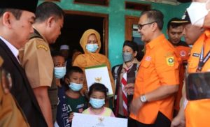 Gerbang Media Nasional Laporan : M Taufik BOGOR, GMN – CIJERUK- Plt. Bupati Bogor Iwan Setiawan bersama jajaran Pemerintah Kabupaten (Pemkab) Bogor lakukan peninjauan ke lokasi bencana alam longsor di Kp.Pasir Pogor RT.01 RW.04 Desa Cipelang Kecamatan Cijeruk Kabupaten Bogor, sekaligus menyerahkan bantuan kepada para korban bencana alam tanah longsor Kecamatan Cijeruk, Senin (23/5/22). Turut hadir mendampingi Plt. Bupati Bogor yakni, Kepala Pelaksana BPBD, Kepala Dinsos, Ketua Baznas Kabupaten Bogor, Camat Cijeruk dan Kades Cipelang. Plt Bupati Bogor, Iwan Setiawan mengungkapkan, saat ini Pemerintah Kabupaten Bogor tengah fokus pada penanganan pasca bencana baik jangka pendek maupun jangka Panjang, serta fokus pada mitigasi bencana di seluruh wilayah untuk mengantisipasi terjadinya bencana alam melalui BPBD Kabupaten Bogor. Menurutnya, penanganan jangka pendek dilakukan melalui pemberian bantuan keuangan sewa rumah untuk tiga bulan kedepan, untuk jangka panjangnya dilakukan dengan merelokasi korban bencana tanah longsor dan membangunkan rumah yang layak di lokasi zona hijau atau aman bencana. “Hari ini kami serahkan bantuan keuangan kepada para korban bencana, dari Dinsos sebesar Rp.15 juta per orang, dan dari Baznas Kabupaten Bogor sebesar Rp.5 juta per orang dan uang sewa rumah untuk tiga bulan kedepan kita berikan untuk keluarga yang terkena bencana dan rumahnya rusak. Juga bantuan alat-alat rumah tangga yang hilang, kita akan cukupi semua mulai dari alat rumah tangga, tempat tidur dan lainnya,” tuturnya. Menurutnya, Pemkab Bogor juga akan segera merelokasi para korban bencana, berdasarkan laporan ada dua rumah yang akan direlokasi, bahkan dirinya sudah perintahkan Camat dan Kades agar segera mencarikan tempat relokasi yang aman, untuk selanjutnya dilakukan pembangunan rumah dengan anggaran Rp.62 juta melalui dana Bantuan Tidak Terduga (BTT). “Kita bagi tugas Kades, Camat dan Danramil untuk menangani bencana alam ini, dan untuk merelokasi, kami ada tim teknis dari BPBD yang sudah terlatih dalam melakukan mitigasi kelayakan tempat relokasi. Mudah-mudahan secepatnya ditemukan lokasi yang aman agar mereka para korban bencana bisa menjalani kehidupan nomal kembali seperti biasa,” katanya. Plt. Bupati Bogor juga menyatakan, apresiasi dan terima kasih kepada BPBD Kabupaten Bogor, Camat, Kapolsek, Danramil, para relawan dan masyarakat yang gerak cepat melakukan penanganan bencana alam longsor di wilayah Kecamatan Cijeruk. “Jika ada bencana, timnya cepat bahkan kelebihan orang yang mau membantu, ini bukti keguyuban warga Bogor, saya ucapkan terima kasih. Bahkan di hari pertama kejadian, Camat, Kalak BPBD saling komunikasi, dan secara daring kami instruksikan agar seluruh kekuatan untuk hadir di lapangan melakukan evakuasi, dan Alhamdulilah kemarin korban terakhir bisa ditemukan,” tegas Iwan Setiawan. Lanjut Iwan Setiawan menegaskan, mitigasi bencana adalah salah satu upaya untuk mengantisipasi dan meminimalisir bencana alam di Kabupaten Bogor, untuk itu ia meminta kepada BPBD Kabupaten Bogor untuk melakukan mitigasi di seluruh wilayah Kabupaten Bogor serta aktif mengajak dan mengedukasi masyarakat untuk bersama-sama melakukan mitigasi bencana. “Masyarakat harus diedukasi bagaimana mitigasi bencana, lokasi mana saja yang rawan bencana sehingga bencana bisa diantisipasi melalui mitigasi bencana. Kami himbau masyarakat untuk tetap waspada mengingat curah hujan yang masih tinggi di Kabupaten Bogor,” tandasnya. Post navigation Seluruh Korban Bencana Longsor di Cijeruk Berhasil di Temukan Pemkab Bogor Hadiri Pelantikan Pj. Bupati Bekasi