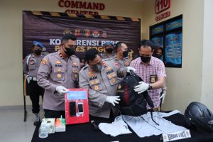 Gerbang Media Nasional Laporan : M Taufik BOGOR, GMN – Polres Bogor, Satuan Reserse Kriminal Polres Bogor bersama Resmob Klapadua berhasil menangkap pelaku penculikan anak yang berinisial A (28) diwilayah Bogor dan Jakarta Selatan, Pelaku berhasil ditangkap di daerah Kebayoran Lama, Jakarta Selatan Kamis (12/5/22). Dari hasil pemeriksaan tersangka, sudah tiga kali menjalani hukuman pidana. Dua kali menjalani hukuman pidana mengenai kasus terorisme, satu kali kasus penipuan terjadi di Depok dan yang bersangkutan juga pernah mengikuti pelatihan di Poso 7 bulan,” kata Kapolres Bogor AKBP Dr.Iman Imanuddin, Kamis (12/5/2022). Untuk motif, kami masih melakukan pendalaman dengan mengumpulkan keterangan dari pelaku. kami juga belum bisa memberikan keterangan lebih jauh apakah aksi penculikannya berkaitan dengan kasus terorisme yang sebelumnya menjerat pelaku. Sementara, modus yang dilakukan oleh pelaku yakni mengaku sebagai anggota polisi. Kemudian, pelaku menakuti para korban yang melanggar protokol kesehatan degan tidak memakai masker. “Yang bersangkutan mengaku sebagai anggota kepolisian Satgas Covid-19, menegur anak-anak melanggar prokes, merokok, lalu anak tersebut untuk ikut serta dengan pelaku,” tukasnya. “Setelah dilakukan pengejaran pelaku berhasil ditangkap di daerah Kebayoran Lama, Jakarta Selatan. Ketika ditangkap pelaku sedang bersama sepuluh anak-anak yang sempat hilang.” Ungkapnya. “Saat kita temukan di sebuah masjid di Kebayoran Lama itu posisinya sedang membawa anak-anak. Dari lokasi kami amankan kurang lebih 10 anak. Yang 9 satu rombongan dari Jakarta Pusat dan yang satu yang hilang di Jakarta Selatan,” pungkasnya. Sebelumnya, bocah laki-laki berinisial FF (11) warga Kemang, Kabupaten Bogor sempat menghilang sejak Minggu 8 Mei 2022. Korban menghilang saat olahraga pagi bersama dengan teman-temannya. Lalu datang pria tidak dikenal mengendarai motor menghampiri FF dan teman-temannya. Pria itu sontak mengaku sebagai anggota Kepolisian dan menegur karena tidak menggunakan masker. Setelah itu FF dibawa oleh pria tersebut hingga tak kunjung pulang. Hingga akhirnya korban ditemukan diwilayah Fatmawati, Jakarta pada Selasa 10 Mei 2022. Pelaku dijerat dengan pasal 82 dan pasal 83 Jo 76F UU no.35 tahun 2014 tentang perubahan atas UU No.23 tahun 2002 tentang perlindungan anak dan atau Pasal 330 KUHPidana ancaman hukuman paling lama 15 belas tahun .Tutup Kapolres Bogor AKBP Dr.Iman Imanuddin SH.S.I.K, M.H. Post navigation Atlet Dayung Kabupaten Bogor Sumbang Emas, Plt. Bupati : Terima Kasih Kami Bangga Dalam Kurun Waktu 4 Jam Sat Reskrim Polres Bogor Berhasil Lakukan Pengungkapan Terhadap Pelaku Curanmor