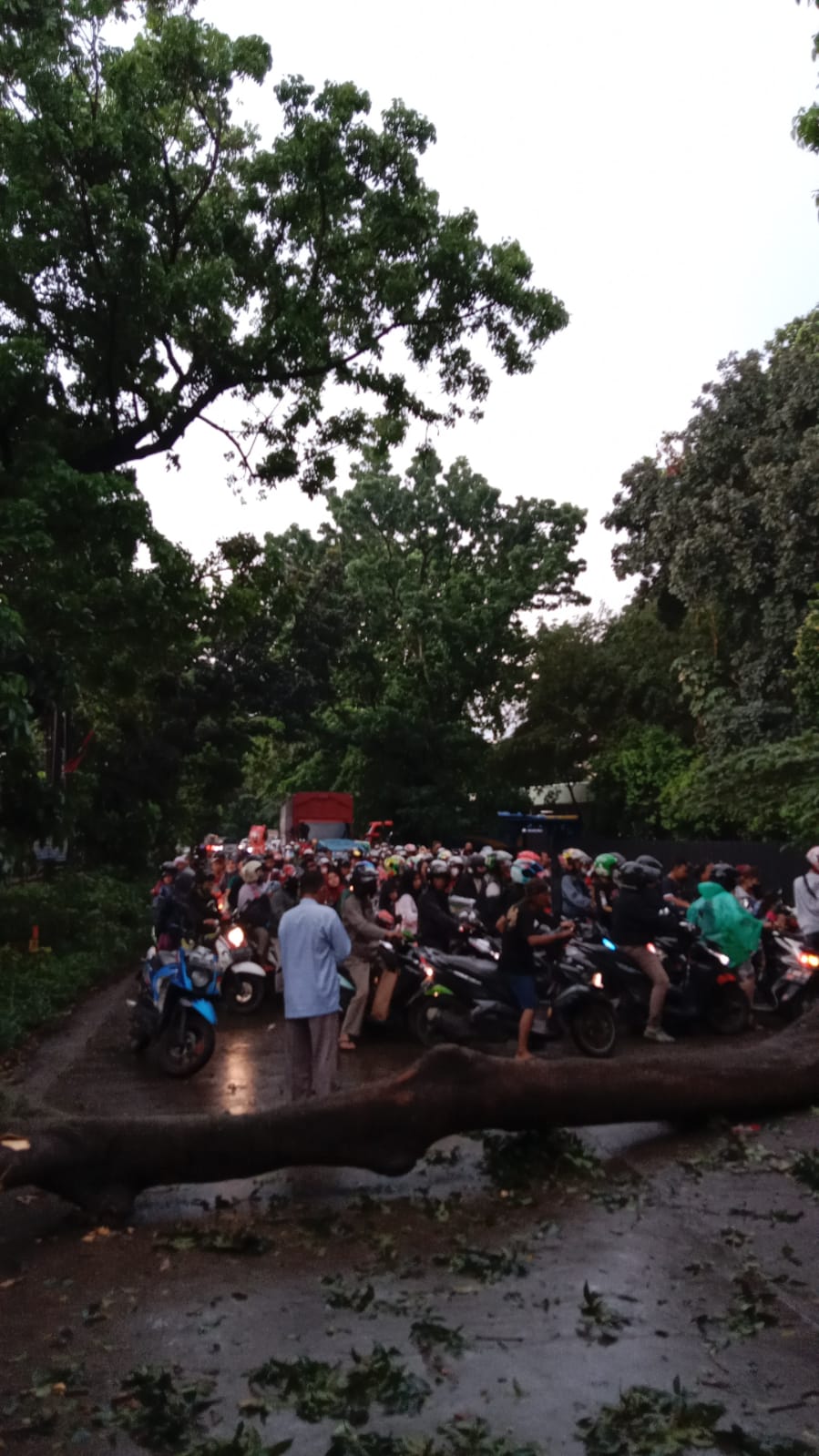 Ambruknya pohon menutupi seluruh badan jalan sehingga menutup Jalan Raya Mercedes-Benz.