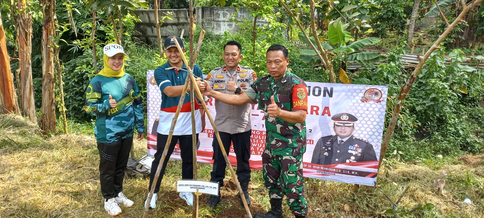 Di Selatan Kabupaten Bogor, Kapolres Bogor AKBP Iman Imanuddin bersama Plt Bupati Bogor Iwan Setiawan melakukan penanaman pohon di Ciliwung, Telaga Saat, Desa Tugu Utara Kecamatan Cisarua.