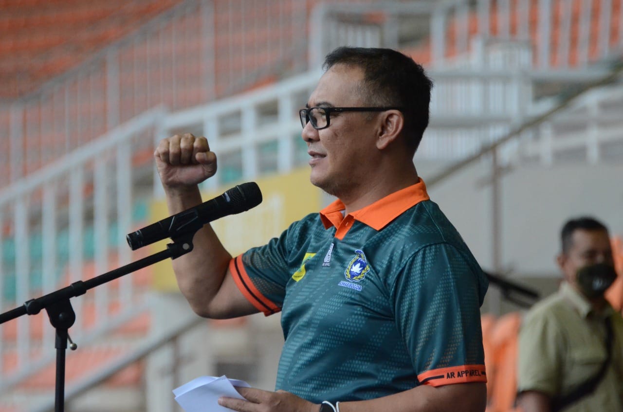 Gerbang Media Nasional Laporan : M Taufik BOGOR, GMN – Plt. Bupati Bogor, Iwan Setiawan secara resmi membuka turnamen sepakbola antar kecamatan, Piala Bupati Bogor U-19 Tahun 2022, di Stadion Pakansari, Cibinong, Jumat (3/6). Kick Off perdana Piala Bupati Bogor 2022 dilangsungkan bertepatan dengan Hari Jadi Bogor (HJB) ke-540. Plt. Bupati Bogor, Iwan Setiawan mengatakan, event ini adalah event yang sudah beberapa tahun kita laksanakan, kita bersyukur Covid-19 dapat ditangani dengan baik sehingga seluruh kegiatan masyarakat mulai kembali bergeliat. Kita terus membesarkan olahraga, melalui event olahraga yang akan menjadi wadah bagi atlet-atlet Kabupaten Bogor. “Atlet yang lahir di Kabupaten Bogor harus bangga dan harus punya kepercayaan diri yang tinggi karena Kabupaten Bogor ini adalah kabupaten yang terbesar di Indonesia”, tandas Iwan . Iwan menambahkan, kita punya stadion skala internasional, Stadion Pakansari cukup terkenal, menjadi salah satu stadion terbaik di Asia Tenggara, kita harus bangga. “Kabupaten Bogor punya klub sepakbola yakni Persikabo 1973, klub kebanggaan Kabupaten Bogor yang ada di tahta tertinggi saat ini, yakni di liga 1, itu harus kita dukung”, kata Iwan. Selanjutnya Iwan Setiawan mengungkapkan apresiasinya kepada para camat dan kepala desa karena berkat dukungan beliau, kegiatan ini bisa terselenggara dengan baik. Tanpa camat dan para kepala desa tidak mungkin kegiatan ini bisa terlaksana. “Saya juga berterima kasih dan sangat mengapresiasi kepada Ketua ASKAB PSSI Kabupaten Bogor. Beliaulah yang membina persepakbolaan di Kabupaten Bogor. Dengan inisiatif dan kebaikan beliau turnamen ini bisa terlaksana,” ungkap Iwan Setiawan. Ketua Panitia, Iswahyudi menjelaskan, kami sangat mengapresiasi banyaknya talenta sepakbola di semua kecamatan yang ada di Kabupaten Bogor. “Kabupaten Bogor ini banyak pemuda bertalenta di bidang sepakbola, dan turnamen sepakbola piala Bupati Bogor U-19 ini diikuti oleh tim 40 kecamatan,” ujarnya Ia berharap, seluruh tim kecamatan se-Kabupaten Bogor dapat bermain dengan baik dan menjunjung sportivitas karena itu akan membawa efek positif terhadap masyarakat dan turnamen sepakbola Piala Bupati Bogor U-19 tahun 2022. Hadir pada kegiatan tersebut, Kepala Dinas Pemuda dan Olahraga, Ketua KONI dan Ketua Askab PSSI Kabupaten Bogor, perwakilan Forkopimda, para Camat, para Kepala Desa, serta para peserta turnamen Piala Bupati Bogor U-19 Tahun 2022. Post navigation Sinergi Dengan DPRD, Pemkab Bogor Ajak Sukseskan Pemerataan Pembangunan Polres Bogor Sidak Pasar Citeureup, Pastikan Ketersediaan Minyak Goreng Curah Aman