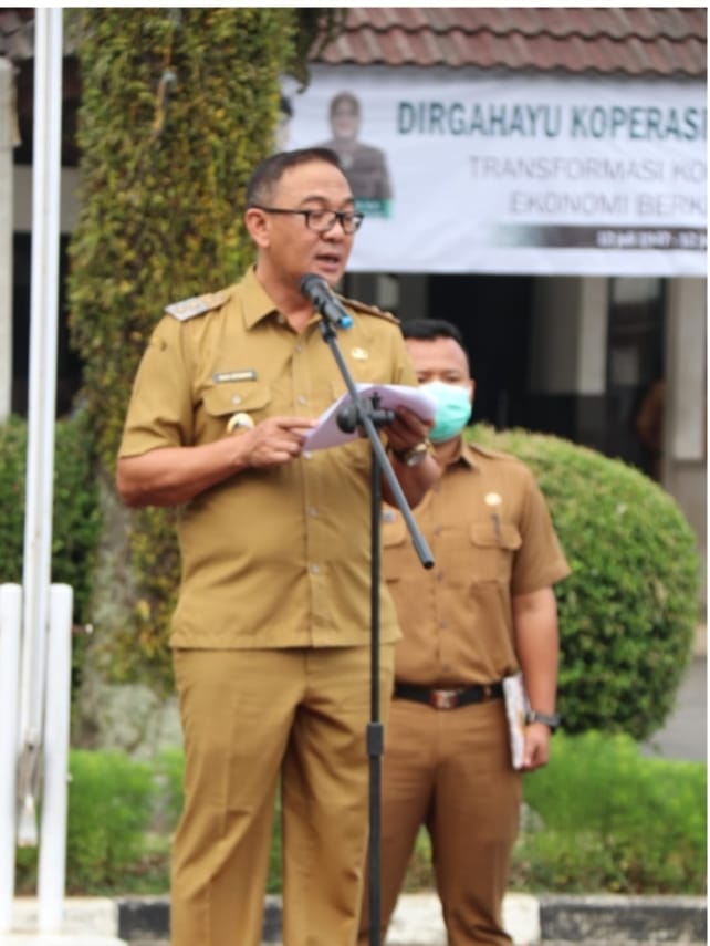BOGOR, GMN – Plt. Bupati Bogor, Iwan Setiawan mengatakan pemerintah menggelorakan gerakan “Ayo Berkoperasi” serta ajak para pemuda terlibat dalam gerakan koperasi. Hal tersebut dikatakannya saat memimpin Upacara Peringatan Hari Koperasi Nasional ke-75 tingkat Kabupaten Bogor, di halaman Kantor Dinas Koperasi & UMKM (Diskopukm) Kabupaten Bogor, Selasa (12/7).