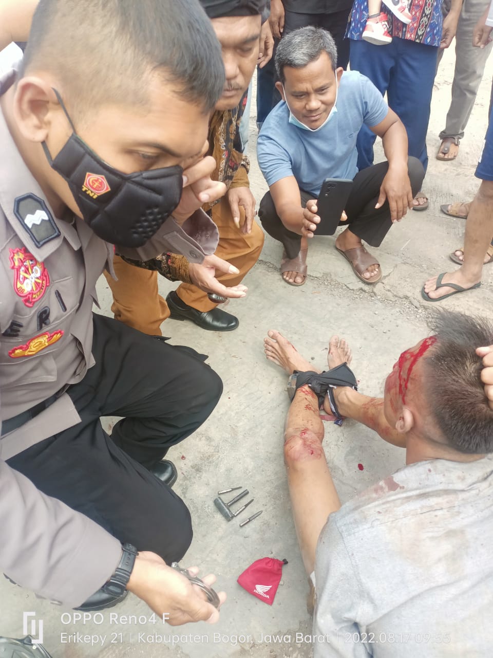 Gerbang Media Nasionalis Laporan : M Taufik BOGOR, GMN – Hari Kemerdekaan dikotori oleh dua orang diduga pencuri motor yang babak belur usai tertangkap warga di Kampung Rawa Ilat RT 01 RW 09 Desa Dayeuh Kecamatan Cileungsi Rabu (17/8/2022). Aksi ini mendadak ramai setelah diunggah ke Wattshap Group. Dalam sebuah video yang beredar, pelaku yang apes tertangkap itu nampak diikat tangan kebelakang dan kaki diikat warga sekira pukul 09.00 WIB. Tubuhnya yang kekar dibiarkan di lapangan sekolah wilayah setempat dengan kedua tangan terikat, sebagian warga terlihat mengerubunginya. Beberapa bagian wajah dan tubuh pelaku mengeluarkan darah akibat luka. Sejumlah warga sempat menghajarnya lantaran kesal maraknya aksi pencurian sepeda motor di Wilayah Cileungsi. Informasi yang dihimpun menyebut, jika semua pelaku berjumlah 2 orang saat beraksi yang satu masuk rumah sakit. “Pelaku orang desa suka Harja Gunung batu kecamatan Sukamakmur,” kata salah satu warga desa Dayeuh. Oleh warga, pelaku yang tertangkap lantas diserahkan ke polisi. Kini kasusnya pun ditangani Polsek Cileungsi. Hal itu dibenarkan oleh Eri Bhabinkamtibmas Desa Dayeuh saat dikonfirmasi wartawan via Wattshapp. “Mohon waktu ya pak masih diperiksa sama penyidik, nanti mampir ke polsek aja,”tukasnya. Post navigation Kapolres Bogor Pimpin Upacara Apel Kehormatan dan Renungan Suci Pemdes Sukawangi Berikan Hadiah Dan Tropy Juara Pada Pemenang Pertandingan Dalam Meriahkan HUT RI ke 77