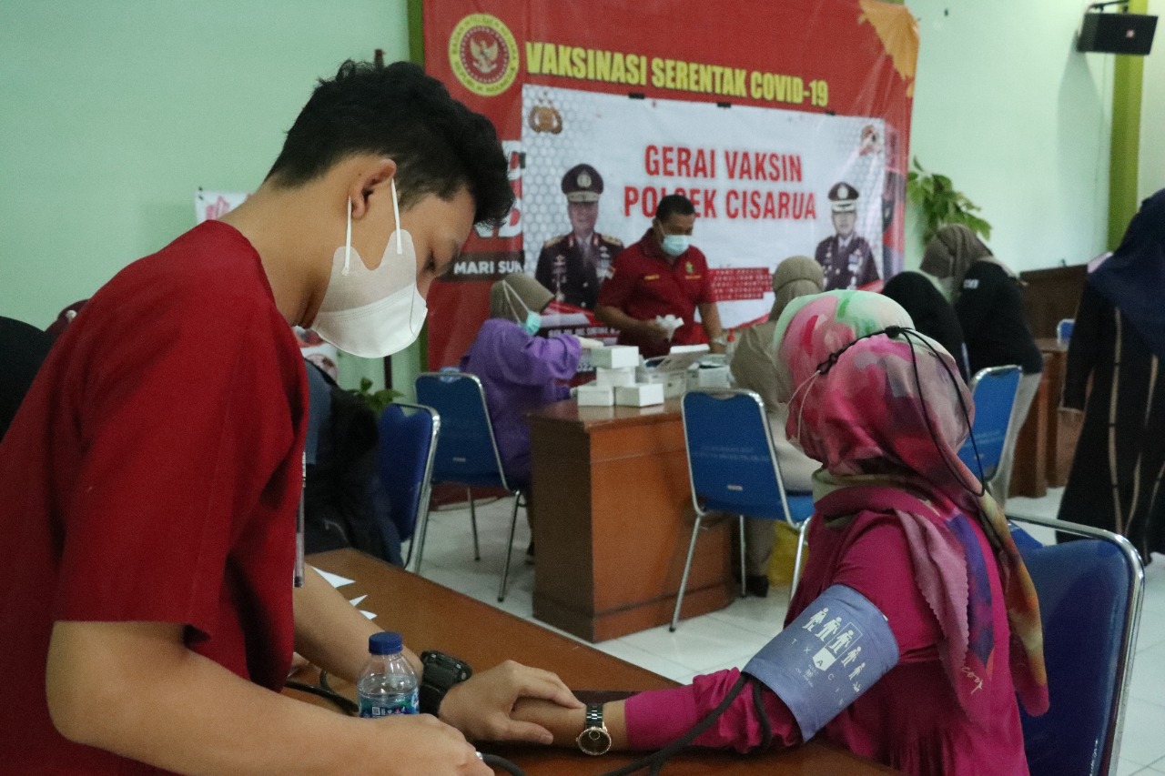 Kegiatan diawali dengan pendaftaran, pengecekan suhu tubuh, registrasi dan verifikasi data NIK, screening kesehatan, penyuntikan vaksinasi serta observasi yang dilakukan selama kurang lebih 15 menit yang dilanjutkan dengan pemberian kartu vaksin.