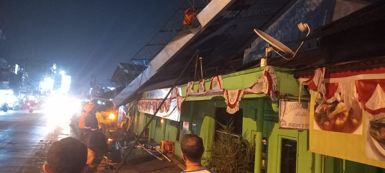 Gerbang Media Nasional Laporan : Hendi. H BOGOR, GMN – Polres Bogor, Hujan deras dan angin kencang yang mengguyur wilayah Desa Sentul Kec. Babakan Madang Kab. Bogor akibatkan papan reklame ukuran 10×5 meter roboh, Kamis (11/8/22). Diketahui papan reklame tersebut milik PT. Agis Promorindo roboh menimpa Rumah Makan milik Hj. Nyai yang mengalami kerusakan berat akibat kejadian tersebut. Papan reklame tersebut berhasil dievakuasi dengan bantuan Polsek Babakan Madang, Satpol PP, PLN dan warga sekitar yang membantu. “Akibat dari kejadian tersebut tidak ada korban jiwa namun kerugian materi diperkirakan mencapai 75 juta rupiah.” Ungkap Kapolsek Babakan Madang Kompol Ricky Wowor, SH. Post navigation Yayasan Suryaniah Bersama jama’ah Majelis Al Istiqomah mengelar Acara Muharam an Hujan Lebat Sebabkan Pohon Tumbang, Inilah Penjelasan Polisi