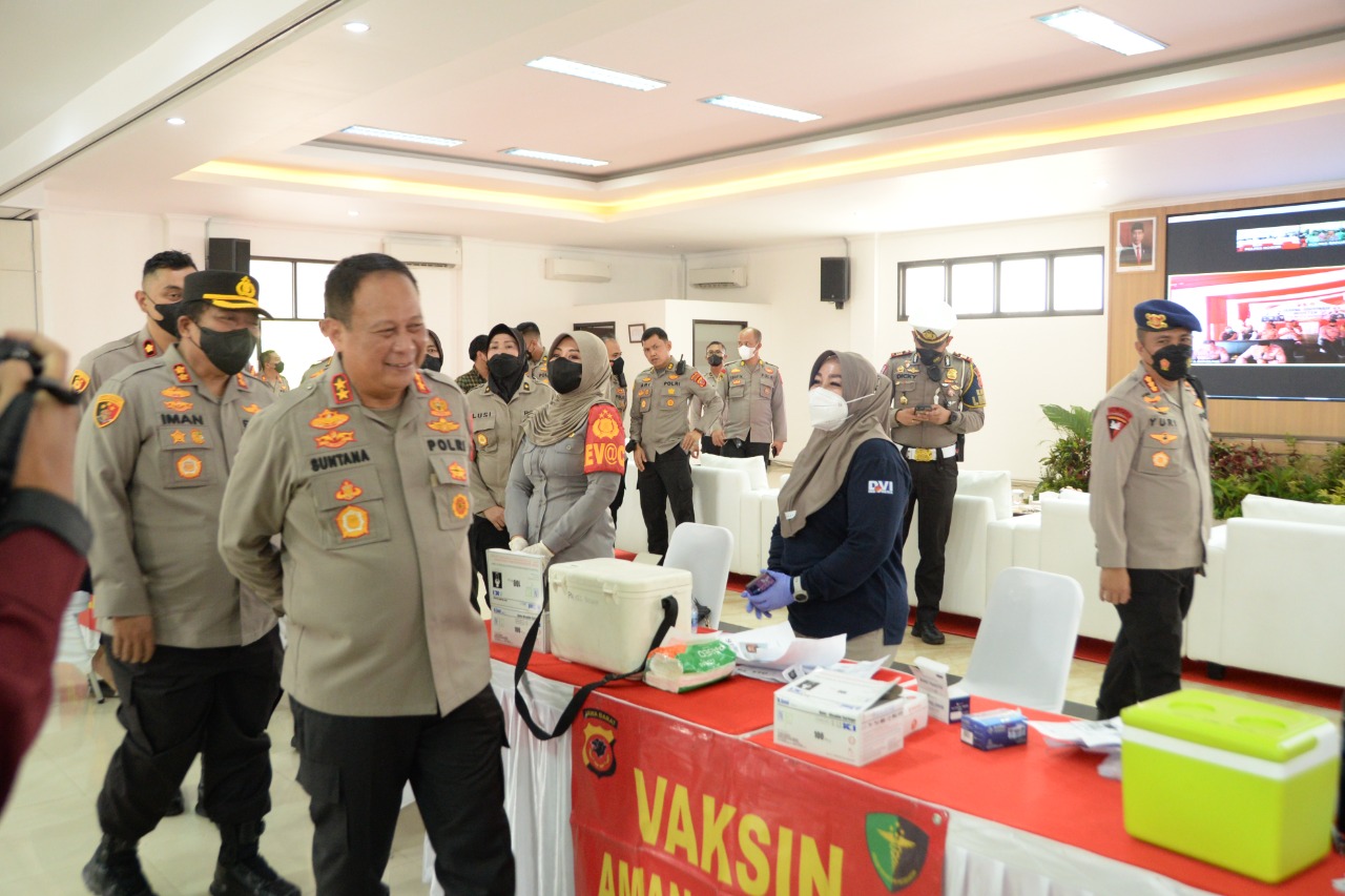 Gerbang Media Nasional Laporan ; M Taufik BOGOR, GMN – Kapolda Jawa Barat Irjen Pol. Drs. Suntana M.Si meninjau pelaksanaan Vaksinasi Booster Covid19 yang di gelar Polres Bogor pada Selasa (02/08/2022) di Aula Sanika Satyawada Polres Bogor. Dalam kunjungan kali ini dirinya yang didampingi oleh Kapolres Bogor AKBP Dr Iman Imanuddin S.H., S.I.K., S.H pun memantau secara langsung kegiatan vaksinasi Booster yang di peruntukan bagi masyarakat umum tersebut. Irjen Suntana mengatakan, vaksinasi yang dilakukan Polres Bogor ini, guna meningkatkan imunitas tubuh sehingga masyarakat tidak mudah terpapar Covid19, terlebih peningkatan Kasus Covid19 yang saat ini trennya terus meningkat. Irjen Suntana menambahkan untuk vaksin tahap pertama, Jawa Barat mencapai 96 persen. Sedangkan vaksin kedua mencapai 87 persen. Untuk vaksin ketiga atau booster hingga akhir Juli 2022, sudah mencapai angka 33 persen. “Ayo segera vaksin, Jaga diri dan keluarga serta orang lain dari penyebaran Covid -19. Kepolisian Jawa Barat akan terus bekerja untuk memberikan vaksin bagi masyarakat. Kita siapkan gerai Vaksinasi di Seluruh Polres maupun Polsek yang berada di Jawa Barat ini, Sehingga seluruh masyarakat yang ingin Vaksin ini bisa langsung datang setiap harinya.” tutup Irjen Suntana. Post navigation antusisi warga Desa karang Mukti Dalam Giat lomba kampung Bersih Anggota DPRD Purwakarta Yang Gunakan Sabu Dibawa Ke BNN Karawang