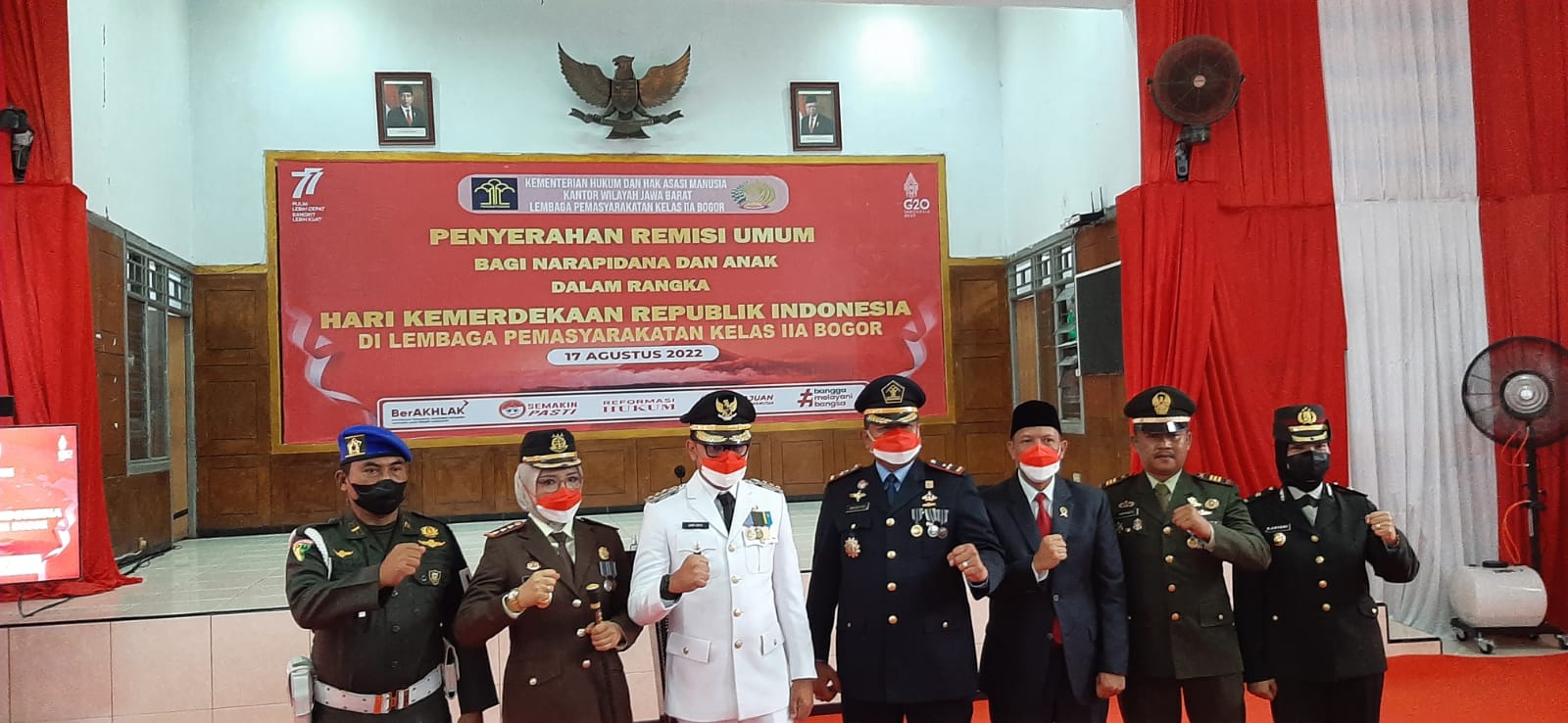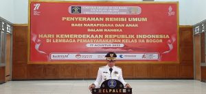 Gerbang Media Nasional Laporan jurnalis : Fitri BOGOR Rabu 17 Agustus 2022, GMN – Telah Dilaksanakan Giat Upacara Penyerahan Remisi Bagi Narapidana yang di buka oleh Bapak Waskito (Ka Lapas Kelas IIa paledang, Dipimpin oleh Dr. H Bima Arya Sugiarto, S.Hum.,M.A (Walikota Bogor) di ikuti Sekitar 50 Orang.Bertempat di Gedung Graha Raharjo Lapas Kelas IIa Paledang Jl. Paledang No.1, RT.01/RW.01, Paledang, Kecamatan Bogor Tengah, Kota Bogor pukul 11:00wib Kegiatan tersebut Turut Hadiri 1. Kompol R Ariani (Kabagren Polresta Bogor) mewakili Kapolresta Bogor 2. Kapten Arm Haryanto (Pasi Intel Kodim 0606/Kota Bogor mewakili Dandim 0606/Kota Bogor 3. Letda Cpm Nursam (Denpom III/1 Bogor) mewakili Dandenpom III/1 Bogor 4. Sekti Anggraini, S.H., M.H (Kajari Kota Bogor) 5. Agung Nugroho, S.H. (Ketua PN Kota Bogor)/Yang mewakili Adapun Rute Tamu VIP menuju Lapas kelas IIa paledang al sbb : – Dari Balaikota bersama-sama dalam satu rangkaian kendaraan dengan pengawalan Polri dan Dishub dengan rute : Balaikota – Jl. Silaban – Jl. Gedong Sawah – Alun-alun Kota Bogor – Jl. Kapten Muslihat – Lapas Kelas IIa Paledang.dengan jumlah Narapidana yang mendapat Remisi umum 17 Agustus TH 2022 berdasarkan katagori tindak pidana :1 Narkoba :R U 1 : 438 Orang RU 2 : 9 Orang Tindak pidana Umum (Tindak pidana selain Narkoba) RU 1 : 154 orang RU 2 : 3 orang Pemberian remisi tersebut telah di berikan Pada Pukul 11.43 Wib, dalam Giat Upacara Penyerahan Remisi Bagi Narapidana di Lapas Kelas IIa Paledang Dr. H Bima Arya Sugiarto, S.Hum.,M.A (Walikota Bogor) menyampaikan dengan ucapan rasa syukur dengan adanya kegiatan ini di berikan kelancaran oleh Allah SWT,hingga acara ini berjalan lancar dan penuh hikmat . Menurutnya Remisi yang diberikan merupakan bentuk apresiasi dan penghargaan diberikan kepada seluruh napi yang telah mengikuti program pembinaan dengan baik dan telah memenuhi persyaratan-persyaratan yang ditentukan perundang-undangan. Semoga remisi umum yang diberikan tersebut dapat menjadi motivasi bagi seluruh warga binaan untuk terus aktif mengikuti program pembinaan dan menjalani masa pidananya dengan baik, dan setelah kembali ke masyarakat dapat menjadi anggota masyarakat yang baik serta berpartisipasi aktif demi kemajuan pembangunan Indonesia. “Tidak ada kata terlambat pada akhirnya saudara dapat diterima kembali dengan baik oleh masyarakat.”ungkapnya ” Ia juga berpesan Kepada masyarakat agar dapat memberikan kesempatan bagi warga binaan yang telah bebas untuk diterima di lingkungan sosial. Post navigation Tepat di Momen Hari Kemerdekaan RI Ke 77, Kapolres Bogor Berikan Perhatian Khusus Kepada Penyandang Disabilitas Muspika Kecamatan Tegalwaru,peringati Upacara HUT RI KE 77,17 Agustus 2022