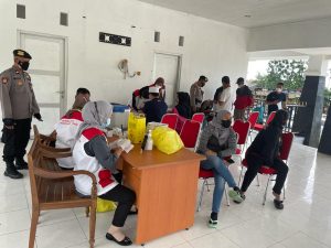 Kegiatan diawali dengan Pendaftaran, pengecekan suhu tubuh, Registrasi dan Verifikasi dan NIK, screening Kesehatan, Penyuntikan Vaksinasi serta Observasi yang dilakukan selama kurang lebih 15 menit yang dilanjutkan dengan pemberian kartu Vaksin