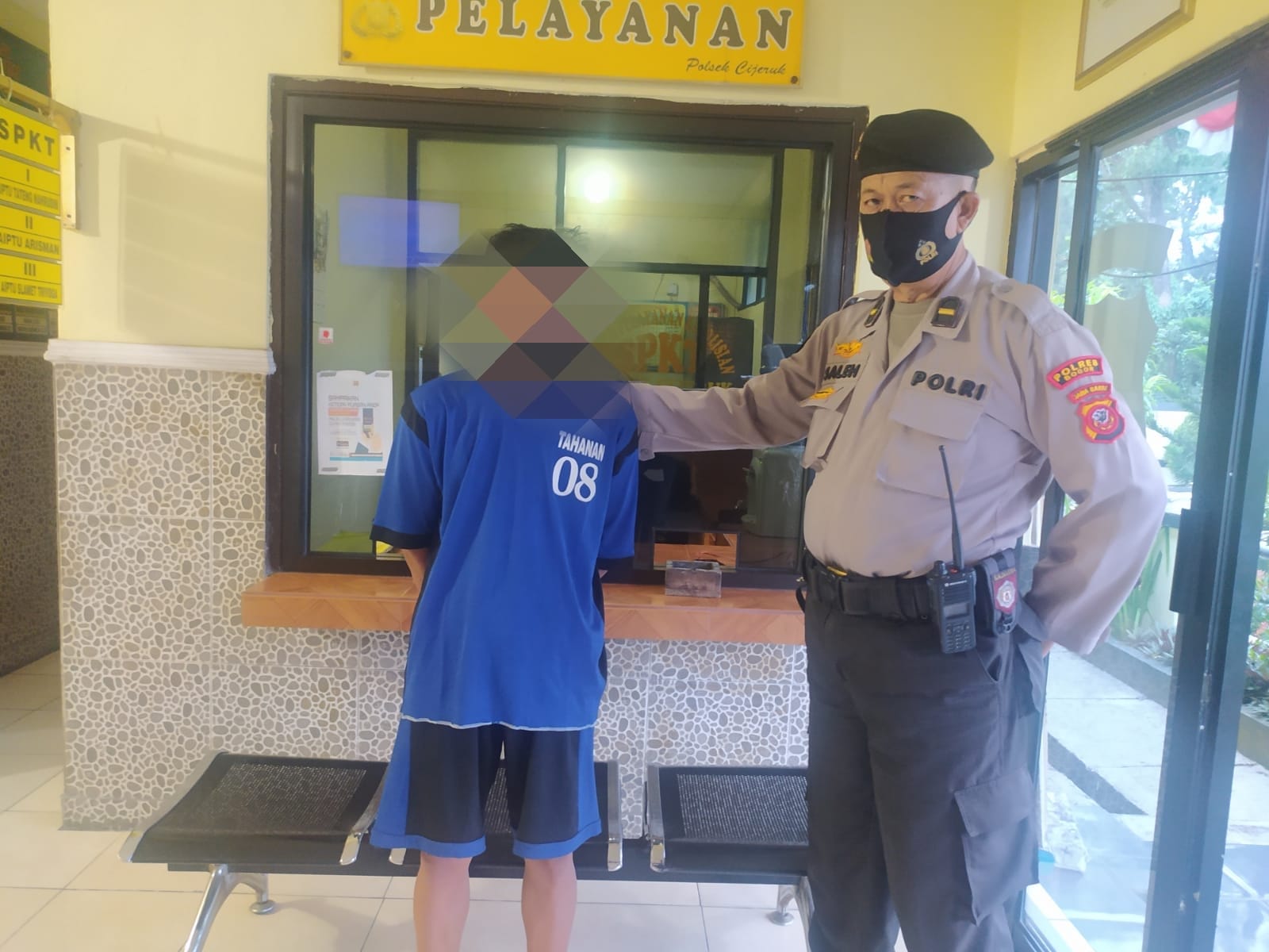 Gerbang Media Nasional Laporan M Taufik BOGOR, GMN – Pria berinisial S (49) di tangkap Polsek Cijeruk Polres Bogor pada Senin (08/08). Penangkapan S tersebut merupakan buntut dari aksi pencabulan yang ia lakukan terhadap seorang anak perempuan penyandang disabilitas. Korban SYZ (20) yang memiliki keterbelakangan mental ini menjadi korban pencabulan yang dilakukan oleh pelaku S dengan iming-iming Uang sebesar 5 ribu rupiah di sebuah rumah kosong di daerah desa Cigombong Bogor. Ungkap Kapolsek Cijeruk Kompol Sumijo S.H., M.H. Aksi bejat pelaku ini sediri diketahui langsung oleh orang tua korban pada hari Minggu (07/08) yang kemudian dari kejadian tersebut langsung di laporkan kepada kami. Yang mana dari penyelidikan yang kita lakukan terkait laporan pencabulan tersebut berhasil kita amankan pelaku S Ini di rumahnya yang tak jauh dari rumah korban. Berikut barang bukti berupa sebuah celana dalam milik pelaku dan sebuah kain yang di gunakan sebagai alas. Atas perbuatannya pelaku ini akan kita jerat dengan pasal 12 dan 15 huruf (h) UU RI No.12 Tahun 2002, dengan ancaman hukuman 15 Tahun penjara, tutup Kapolsek Cijeruk. Post navigation Gerai Vaksin Booster Polsek Jajaran Polres Bogor Kapolres Bogor Pimpin Upacara Korps Rapot Kenaikan Pangkat Pengabdian