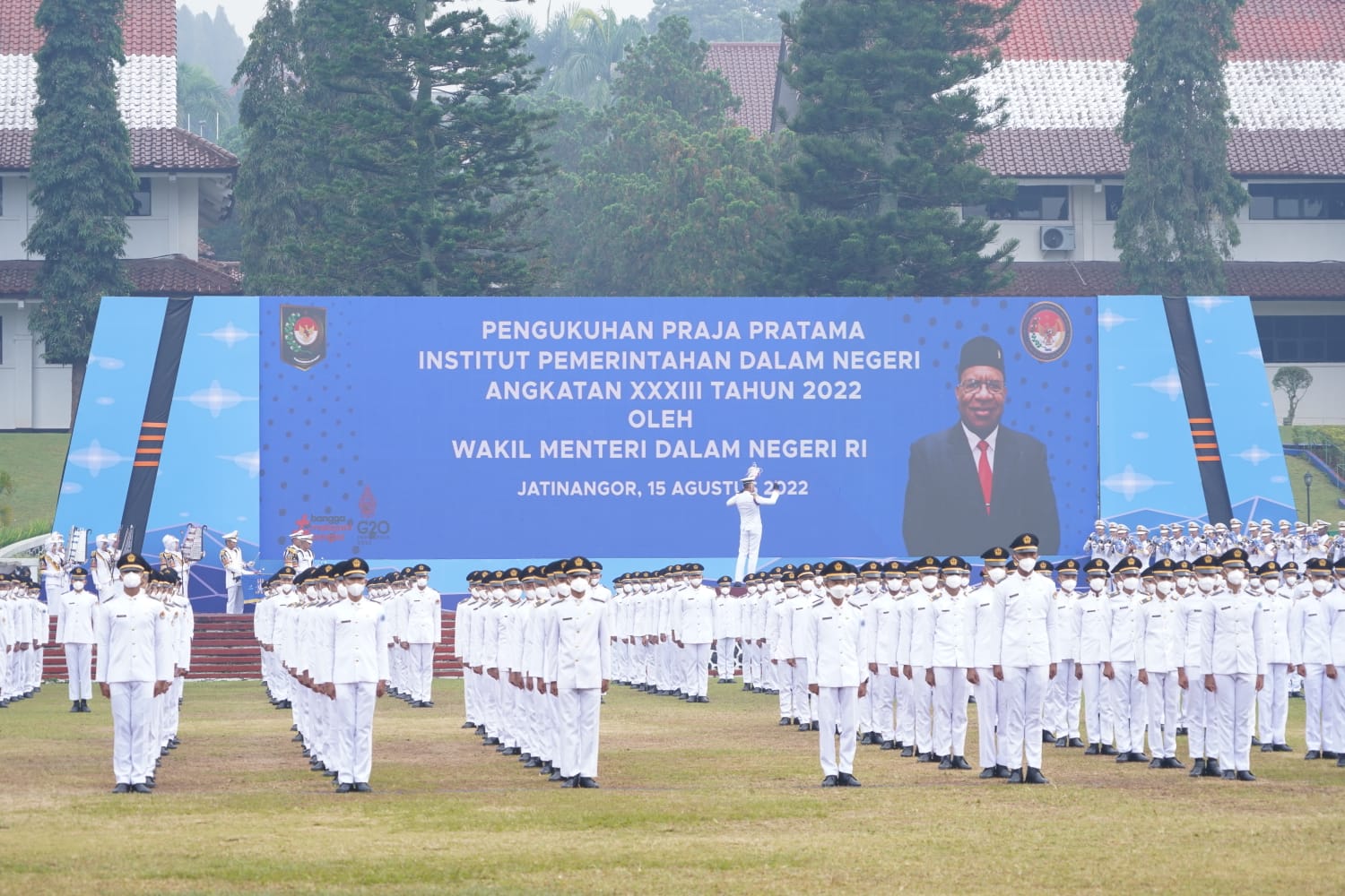 SUMEDANG, GMN – Wakapolda Jabar Brigjen Pol.Bariza Sulfi didampingi Karo SDM, Karo Ops, Waka SPN dan Kapolres Sumedang menghadiri undangan dari Rektor IPDN pada Acara Pengukuhan Praja Pertama IPDN angkatan XXXVIII tahun 2022, Senin (15/8/2022)Wamendagri memimpin kegiatan tersebut dan memberikan arahan kepada seluruh Praja angkatan XXXVIII tahun 2022, dalam sambutannya beliau mengingatkan untuk praja yang akan melaksanakan pendidikan selama 4 tahun harus semangat, disiplin, rajin dan bisa menjaga amanat negara kesatuan republik indonesia, karena kelak mereka akan menjadi penerus bangsa ini dan pemimpin serta akan menjadi pelayanan masyarakat yang baik dan profesional.