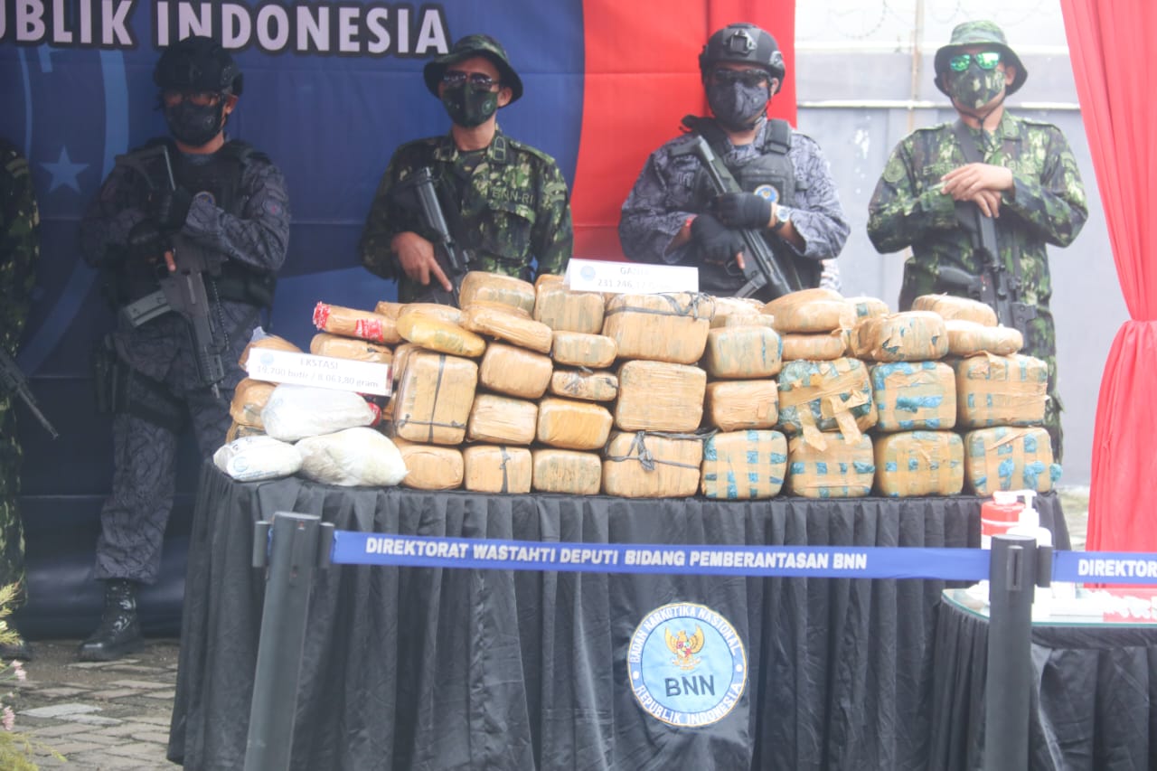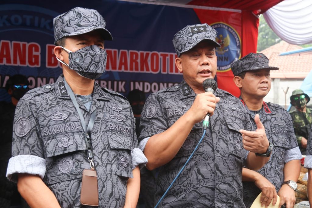 Gerbang Media Nasional Laporan : M Taufik BOGOR, GMN – Pemerintah Kabupaten (Pemkab) Bogor diwakili Kepala Badan Kesatuan Bangsa dan Politik (Kesbangpol) mengikuti kegiatan pemusnahan barang bukti (BB) kasus narkotika, di halaman Kantor Badan Narkotika Nasional (BNN) Kabupaten Bogor, Cibinong, Kamis (8/9). Sebanyak ratusan ribu gram barak bukti narkotika golongan 1 dimusnahkan. Sekretaris Badan Narkotika Nasional (BNN) Republik Indonesia, I Wayan Sukawinaya mengungkapkan, kegiatan BNN hari ini dalam rangka melaksanakan kegiatan pemusnahan barang bukti narkotika yang dilakukan oleh BNN untuk ke-4 kalinya sepanjang tahun 2022. Pemusnahan barang bukti narkotika adalah sebagai wujud transparansi dan pertanggungjawaban BNN kepada publik. “Barang bukti narkotika yang dimusnahkan hari ini berupa narkotika golongan 1 yakni, sabu seberat 235.528 gram, ganja seberat 231.246,17 gram, kemudian ada ekstasi seberat 19.700 butir atau 8.063,80 gram. Seluruh barang bukti yang disita berasal dari 10 Laporan Kasus Narkotika (LKN) dengan 16 tersangka,” ungkap I Wayan. Ia menambahkan, hal ini sesuai dengan amanah Pasal 91 ayat 2, ayat 3, ayat 4, dan ayat 5, dan Pasal 92 ayat 3 UU No. 35 Tahun 2009 tentang Narkotika yaitu, barang sitaan narkotika dan prekursor narkotika yang berada dalam penyimpanan dan pengamanan penyidik yang telah ditetapkan untuk dimusnahkan. “Kasus tindak pidana narkotika yang berhasil diungkap ini berkat sinergitas yang dijalin antara BNN dengan TNI, Polri serta Bea dan Cukai Republik Indonesia,” terangnya. Post navigation Pemkab Bogor Ikuti Rakor TPID, Bahas Langkah Strategis Pengendalian Inflasi Polres Bogor Bersama Mahasiswa Berikan Bantuan Kepada Masyarakat Terdampak Kenaikan harga BBM