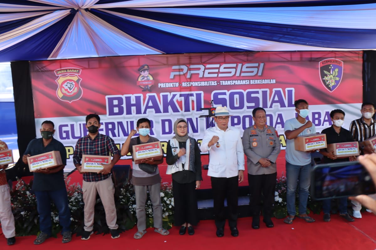 Pada kesempatan itu, Gubernur Jawa Barat Ridwan Kamil bersama Irjen Pol Suntana melakukan bakti sosial untuk nelayan wilayah Pantura Jabar di Karangsong, Indramayu.