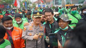 KARAWANG, GMN – Kepala Kepolisian Resor Karawang Polda Jabar AKBP Aldi Subartono pimpin langsung pengamanan unjuk rasa yang dilakukan oleh mahasiswa bersama Komunitas Ojek Online ( Ojol) didepan Kantor Bupati Karawang, Kamis (22/09/2022)