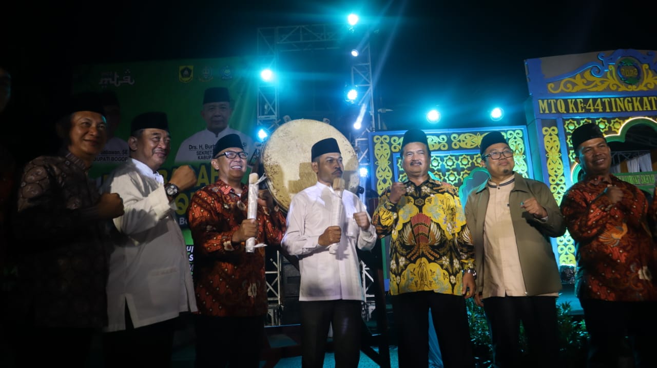 Gerbang Media Nasional Laporan : M Taufik BOGOR, GMN – Plt. Bupati Bogor, Iwan Setiawan membuka kegiatan Musabaqah Tilawatil Qur’an (MTQ) ke-44 tingkat Kabupaten Bogor tahun 2022, di Metland Transyogi, Cileungsi, Ahad (25/9). Kecamatan Cileungsi jadi tuan rumah MTQ dengan tema “Tingkatkan Kualitas SDM yang Qurani dan Unggul untuk Mewujudkan Masyarakat yang Religius dan Moderat”. Pelaksanaan MTQ ke-44 tingkat Kabupaten Bogor diikuti 2.160 orang dengan 8 cabang perlombaan. Pelaksanaan dimulai tanggal 25 sampai 28 September 2022 di Kecamatan Cileungsi yang tersebar pada 11 lokasi mimbar. Hari ini rangkaian pembukaan MTQ dimulai dengan pawai ta’aruf yang diikuti 40 kecamatan dengan kurang lebih 5.000 peserta pawai. Hadir pada pembukaan MTQ ke-44, Forkopimda Kabupaten Bogor, para anggota DPRD, Sekretaris Daerah (Sekda), Ketua TP PKK, Kepala Kantor Kementerian Agama, Ketua Umum Baznas, Ketua Umum Lembaga Pengembangan Tilawatil Qur’an (LPTQ) Kabupaten Bogor, para habaib, kyai, alim ulama, asatidz/ustadzah, jajaran Pemkab Bogor dan seluruh stakeholder. Plt. Bupati Bogor, Iwan Setiawan menuturkan, MTQ merupakan bagian dari misi Pemkab Bogor untuk meningkatkan kesalehan sosial di masyarakat melalui syiar Islam untuk mengajak masyarakat agar mencintai Al-Qur’an, serta menghayati dan mengamalkan nilai-nilainya sebagai pedoman hidup, bermasyarakat, berbangsa, dan bernegara. Ajang MTQ bukan sekedar formalitas, rutinitas, atau menang kalah dalam seni membaca Al-Quran namun sebagai syiar untuk membumikan Al-Quran dalam kehidupan sehari-hari. “Dengan kegiatan MTQ di tengah kota ini, yakni di Metland Transyogi Cileungsi, membuktikan syiar untuk membumikan Al-Quran dalam kehidupan sehari-hari bukan hanya di wilayah pedesaan, melainkan di perkotaan,” tutur Iwan. Iwan mengungkapkan, kegiatan MTQ tingkat Kabupaten Bogor ini sebagai awal kita untuk melangkah ke tingkat Provinsi Jawa Barat. Harapan saya tentunya bisa menjadi yang terbaik se-Jawa Barat. Kami siap mendukung, kepada para camat agar memperhatikan para utusan atau perwakilan kecamatannya masing-masing selama mengikuti kegiatan MTQ ini, agar para peserta dan kafilah dapat memberikan yang terbaik. “Kemudian, para dewan hakim agar melaksanakan tugasnya dengan profesional dan memberikan penilaian secara objektif dan jujur serta menjunjung tinggi sportivitas,” ungkap Iwan. Iwan mengucapkan, selamat berlomba para peserta dan kafilah MTQ dari seluruh kecamatan se-Kabupaten Bogor yang kami banggakan, ikuti rangkaian kegiatan ini sebaik-baiknya, berkompetisi secara sehat dan raihlah prestasi agar dapat mewakili Kabupaten Bogor dalam event tingkat provinsi, nasional dan internasional. Sementara itu, Kepala Kantor Kementerian Agama Kabupaten Bogor, H. Syukri Ahmad Fanani mengatakan, hari ini saya sangat berbahagia karena dapat bersama-sama menghadiri kegiatan syiar ini. Saya berharap arena MTQ yang ada di Kecamatan Cileungsi ini nantinya bukan cuma sekedar perhelatan MTQ saja tapi juga kegiatan lainnya yang menyemarakkan kehidupan beragama kita. “Kemudian diharapkan penyelenggaraan MTQ ini nantinya dapat melahirkan Qori dan Qoriah, Hafidz dan Hafidzah, Mufassir dan Mufassiroh, Qhotat dan Qhotatah yang benar-benar dari Kabupaten Bogor,” kata Syukri. Ia menambahkan, sehingga dapat meneruskan para pendahulu kita pada jaman keemasan, yang berhasil mengharumkan nama Kabupaten Bogor di kancah internasional pada tahun 1980 – 1990an dengan meraih hasil yang gemilang. Post navigation Lantik Dewan Hakim MTQ ke-44, Sekda Minta Dewan Hakim Bertugas Secara Profesional, Jujur dan Objektif Pentingnya PTSL Pada HUT Agraria dan Tata Ruang