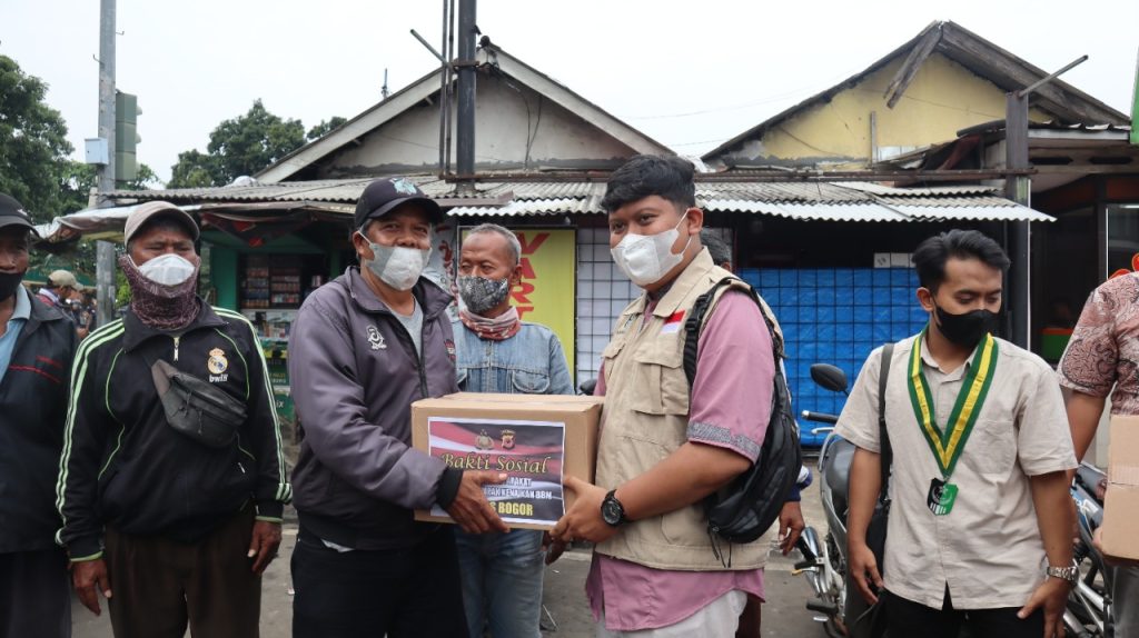 BOGOR, GMN – Kenaikan harga bahan bakar minyak (BBM) dampaknya di rasakan sebagai besar masyarakat. Akan hal tersebut Polres Bogor bersama serikat mahasiswa muslim Indonesia (SEMMI) gelar bakti sosial dengan memberikan bantuan paket sembako bagi masyarakat yang terdampak kenaikan harga BBM, Pada Jum’at (09/09)