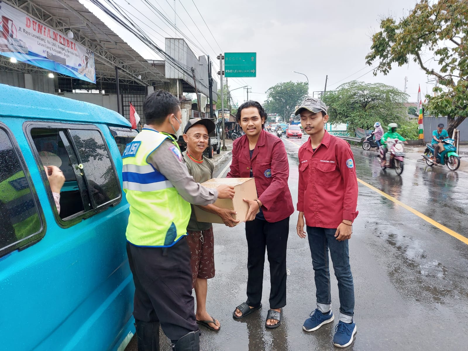 Sebanyak 100 Paket sembako yang di siapkan Polres Bogor pun di berikan kepada tukang ojek, supir angkot, pedagang kaki lima dan masyarakat yang berada di depan Pos Polisi 10B yang berada di depan Mall CCM dan pos Polisi 11B yang berada di lampu merah Sentul.