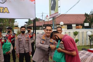 SUKABUMI, GMN – Puluhan PHL (pegawai harian lepas) Polres Sukabumi Kota terima bantuan sosial yang disalurkan Kapolres Sukabumi Kota Polda Jabar AKBP SY. Zainal Abidin beserta pejabat utama di halaman Mapolres Sukabumi Kota, Sabtu (1/10/2022)