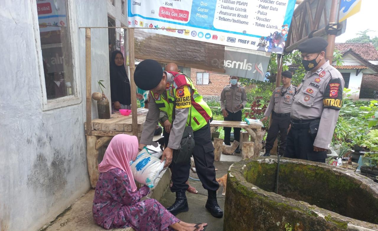 Samapta Polres Tasikmalaya Kota Polda Jabar melaksanakan kegiatan Bakti Sosial dengan membagikan sembako kepada warga di Kampung Gunungjambe Kelurahan Cipawitea Kecamatan Mangkubumi Kota Tasikmalaya, Kamis (13/10/2022)