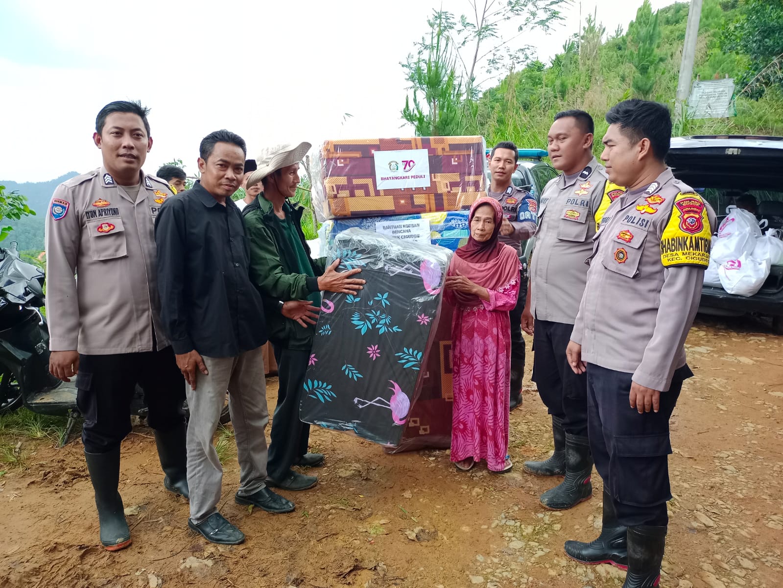 Polsek Cigudeg Polres Bogor Berikan Bantuan Sosial Kepada Warga Terdampak Bencana Longsor