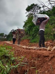 Brigadir Iyon Apriyono dan para anggota yang tugas piket kegiatan tersebut di lakukan pada pukul 11:00 WIB bantuan bansos tersebut di bagikan sebanyak 15 KK ( Kepala Keluarga ) terdampak bencana tanah longsor,”ujar Brigadir Iyon Apriyono