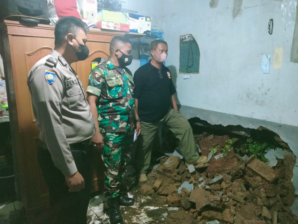 Tebing setinggi 3 meter longsor yang langsung *menimpa* rumah milik Roni Zulkarnain, akibatkan tembok rumah pada bagian ruang tamu, dapur dan tembok yang berada di samping rumah mengalami kerusakan yang cukup parah.