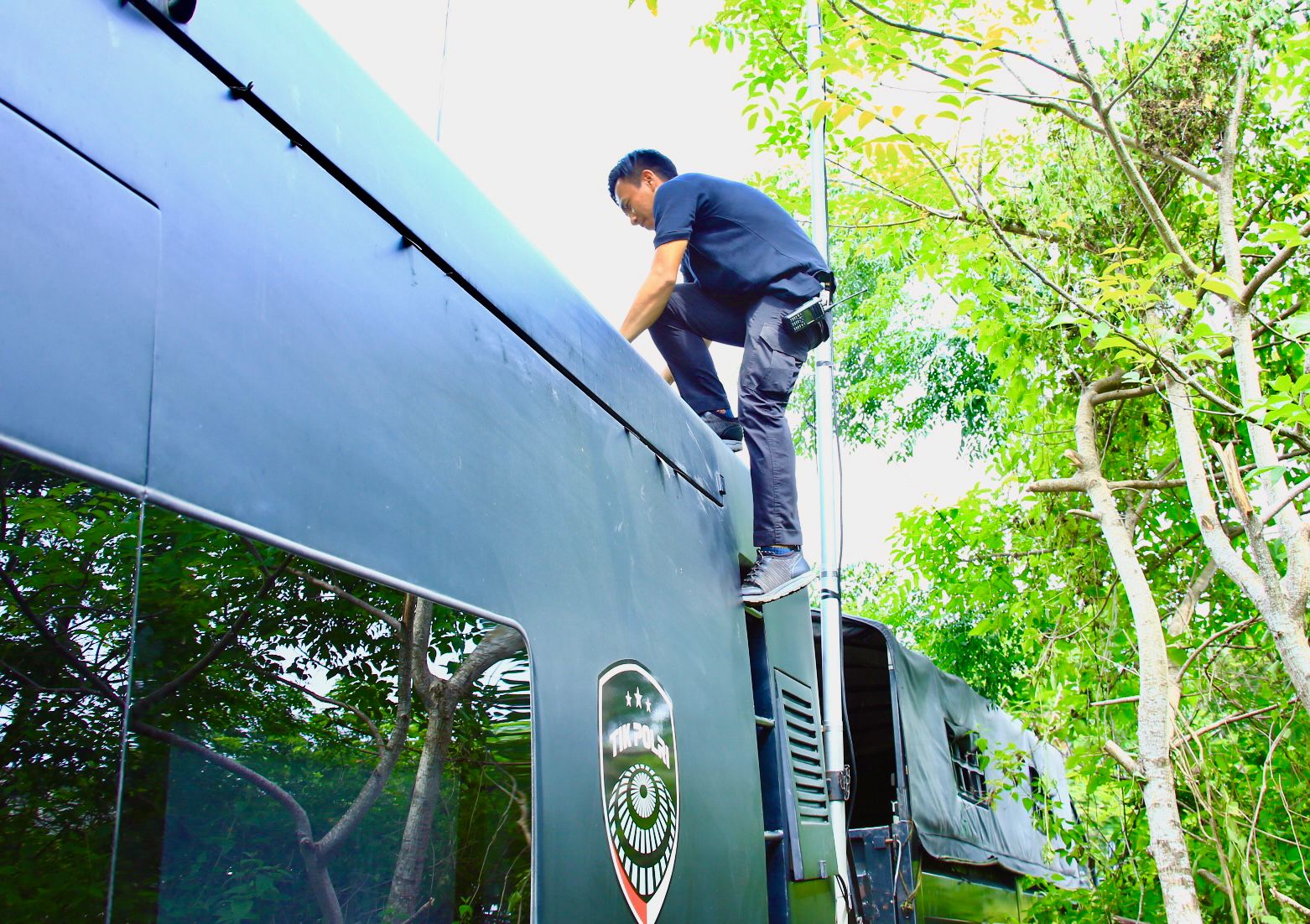 “Setelah disurvei kendaraan tersebut disimpan dilokasi ini untuk memperluas jangkauan radio komunikasi, titik-titik yang blank spot tadi dicover dengan kendaraan mobile repeater sehingga pengawalan tidak putus komunikasinya,” kata perwira pengendali mobile repeater AKP Arie Wibisono di lokasi, Minggu (13/11/2022).