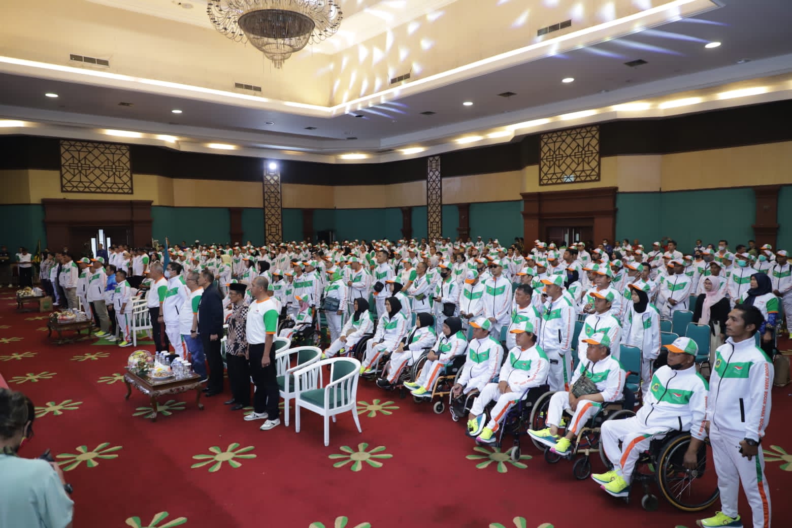 Gerbang Media Nasional Laporan : H. Wadi BOGOR, GMN – Jelang perhelatan Pekan Paralimpik Daerah (Peparda) VI Jawa Barat tahun 2022, Plt. Bupati Bogor Iwan Setiawan lakukan pengukuhan dan pelepasan kontingen Peparda untuk siap bertanding dan mempertahankan Kasta Juara, yang berlangsung di Gedung Tegar Beriman, Kamis (17/11/22). Dalam kesempatan ini Plt. Bupati Bogor Iwan Setiawan menegaskan bahwa Pemerintah Kabupaten Bogor berkomitmen untuk senantiasa mendukung para kontingen dan atlet Kabupaten Bogor, melalui anggaran dan pendampingan secara langsung dari para stakeholder ke lokasi pertandingan, untuk mensupport para atlet dalam mempertahankan kasta juara dengan target juara umum. “Ini hal yang luar biasa, kami komitmen dengan visi misi termaju, nyaman dan berkeadaban. Kami ingin termaju disemua sektor tidak hanya maju di pembangunan juga termaju di bidang olahraga. Kami tidak hadir hanya verbal saja tapi berkomitmen dengan anggaran dan kehadirannya. Kami ingin seluruhnya hadir mendukung dan menyemangati para atlet kebanggaan Kabupaten Bogor dengan target kita juara umum,” ungkap Plt. Bupati Bogor. Lanjut Iwan Setiawan mengungkapkan bahwa olahraga adalah barometer majunya suatu daerah karena diukur dengan prestasi olahraga. Menurutnya, negara maju rangkingnya diprestasi olahraga. Dukungan penuh menjadi power bagi para atlet karena mereka berjuang tidak hanya untuk diri mereka sendiri tetapi berjuang untuk Kabupaten Bogor. “Mereka berjuang membawa nama Kabupaten Bogor, atlet yang hadir hari ini harus bangga karena kalian sebagai duta atlet yang mewakili enam juta rakyat Kabupaten Bogor. Saya titipkan panji dan jaga Kabupaten Bogor, naikkan bendera Kabupaten Bogor setinggi-tingginya dibanding daerah-daerah lainnya di Jawa Barat. Jadikan motivasi bukan tekanan, ini saatnya kalian membuktikan kalian membawa nama Kabupaten Bogor,” bebernya. Selanjutnya, Ketua Kontingen PEPARDA, Bambang W Tawekal mengatakan, Peparda ke VI Jabar tahun 2022 akan digelar secara terpusat di Kabupaten Bekasi dimulai dari 22-30 November 2022 dan ditutup pada 1 Desember 2022. Sebanyak 180 atlet Kabupaten Bogor, official 79 orang dan 48 orang pengurus kontingen, sehingga totalnya 307 orang akan mengikuti pertandingan pada 12 Cabang Olahraga yang terdiri dari, Atletik, Angkat Berat, Bulu Tangkis, Goal Ball, Panahan, Tenis Meja, Tenis Kursi Roda, Menembak, Renang, Voli Duduk, Catur dan Judo. “Kontingen akan diberangkatkan pada 20 November 2022 nanti, kumpul di Stadion Pakansari Gate 5 yang akan dikawal oleh Polres Bogor dan Dishub Kabupaten Bogor. Pembukaan Peparda VI Jabar tahun 2022 akan dilaksanakan pada 22 November 2022 di Hotel Nuansa Kabupaten Bekasi. Mulai tanding 23 November yang digelar di tiga venue yakni di GOR Futsal Grand Wisata Kecamatan Tambun dan Stadion Wibawa Mukti Kecamatan Cikarang dan The Kahayangan Arteri Residence,” tuturnya. Hal senada diungkapkan Ketua NPCI Kabupaten Bogor, M. Misbah menyatakan bahwa persiapan dan kesiapan telah dilakukan mulai dari tahapan persiapan sesuai program kegiatan yang tertuang dalam rencana kerja dan anggaran NPCI tahun 2022. “Januari hingga Juni kami telah melakukan seleksi Pra Pelatcab selama lima bulan, kemudian Agustus laksanakan Bimtek, dan Pelatcab selama tiga bulan Agustus-November. Ini kami persiapkan untuk Peparda ke VI Jabar tahun 2022, agar kita bisa mempertahankan predikat juara umum,” tukasnya. Turut hadir, Danlanud ATS, Dandim 0621, Perwakilan Kapolres Bogor, Kejari, BNNK, Kepala Kantor Kemenag Kabupaten Bogor, Ketua NPCI Provinsi Jabar, Kepala ATR/BPN Kabupaten Bogor, Pimpinan BJB, Dispora, , Ketua Kontingen Porprov, Ketua PHRI dan Kadin. Post navigation Komisi IX DPR RI Ajak Pemkab Bogor Sinergi Tangkal Ancaman Resesi Global 2023 Melalui Bogor Overland, Dapat Dorong Tingkatkan Pariwisata Kabupaten Bogor