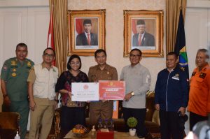 “Hari ini kami mewakili masyarakat Kabupaten Bogor datang kesini menyampaikan bantuan yang dikoordinir di Bogor. Kami bantu kebutuhan yang sifatnya instan seperti selimut, tenda, terpal, kasur, sarung dan lainnya. Ada bantuan dari 4 RSUD yang ada di Kabupaten Bogor, seperti infus, alat jahit, perban, obat-obatan, serta uang tunai dari sejumlah perusahaan salah satunya PT. Indocement juga Kadin, Alhamdulilah para pengusaha kami kompak apalagi berkaitan dengan kegiatan sosial kebencanaan,” tegas Plt. Bupati Bogor.